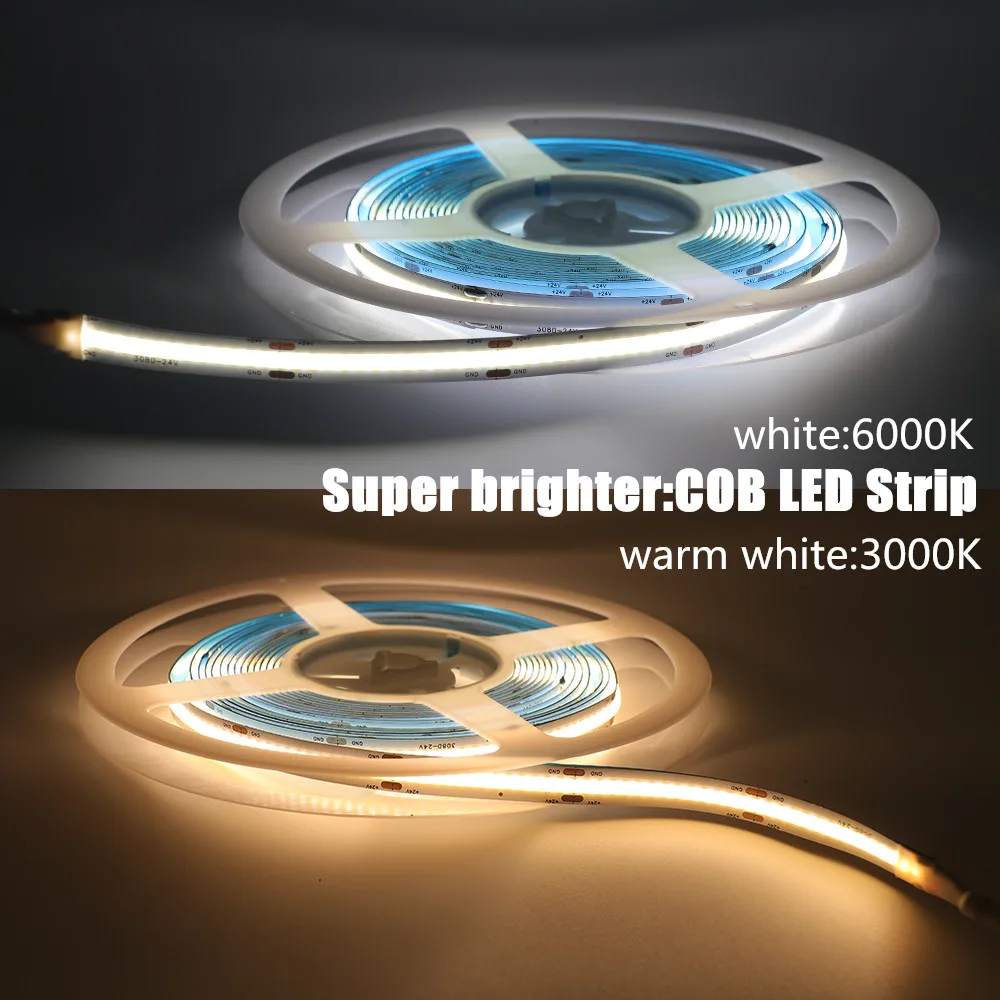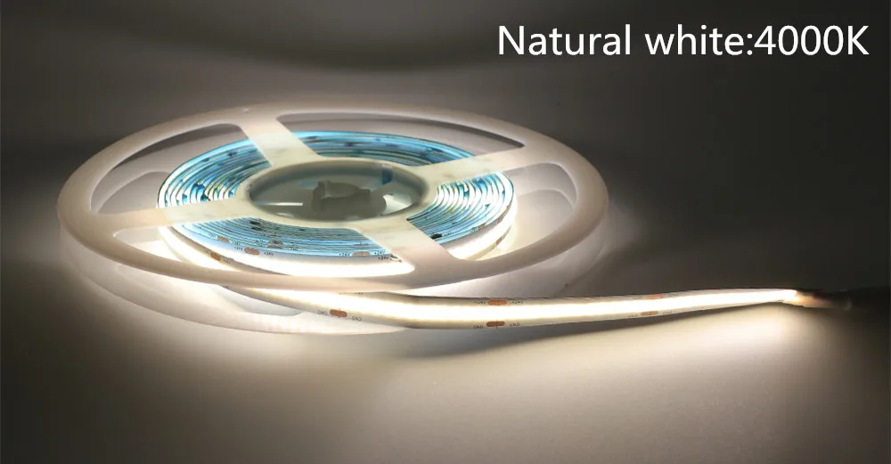 Светодиодная ленсветильник с монолитным блоком светодиодов, 12 В постоянного тока, 24 В, гибкая лента высокой плотности с регулируемой яркостью, линейная лента FOB, теплыйнатуральный белый свет, 3000K, 4000K, 6000K