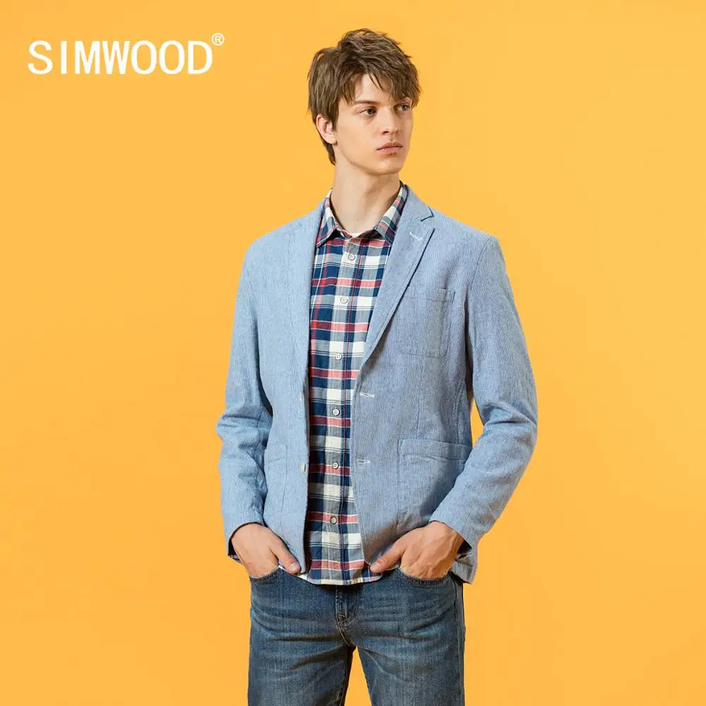 Мужской Хлопковый Блейзер SIMWOOD, повседневный приталенный пиджак в полоску, модель SJ130052 на осень, 2021