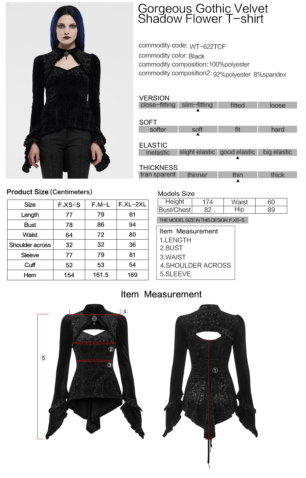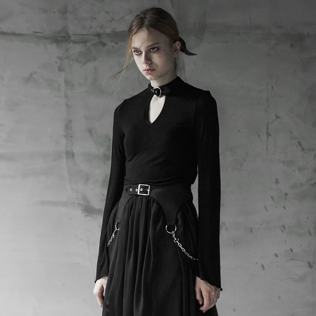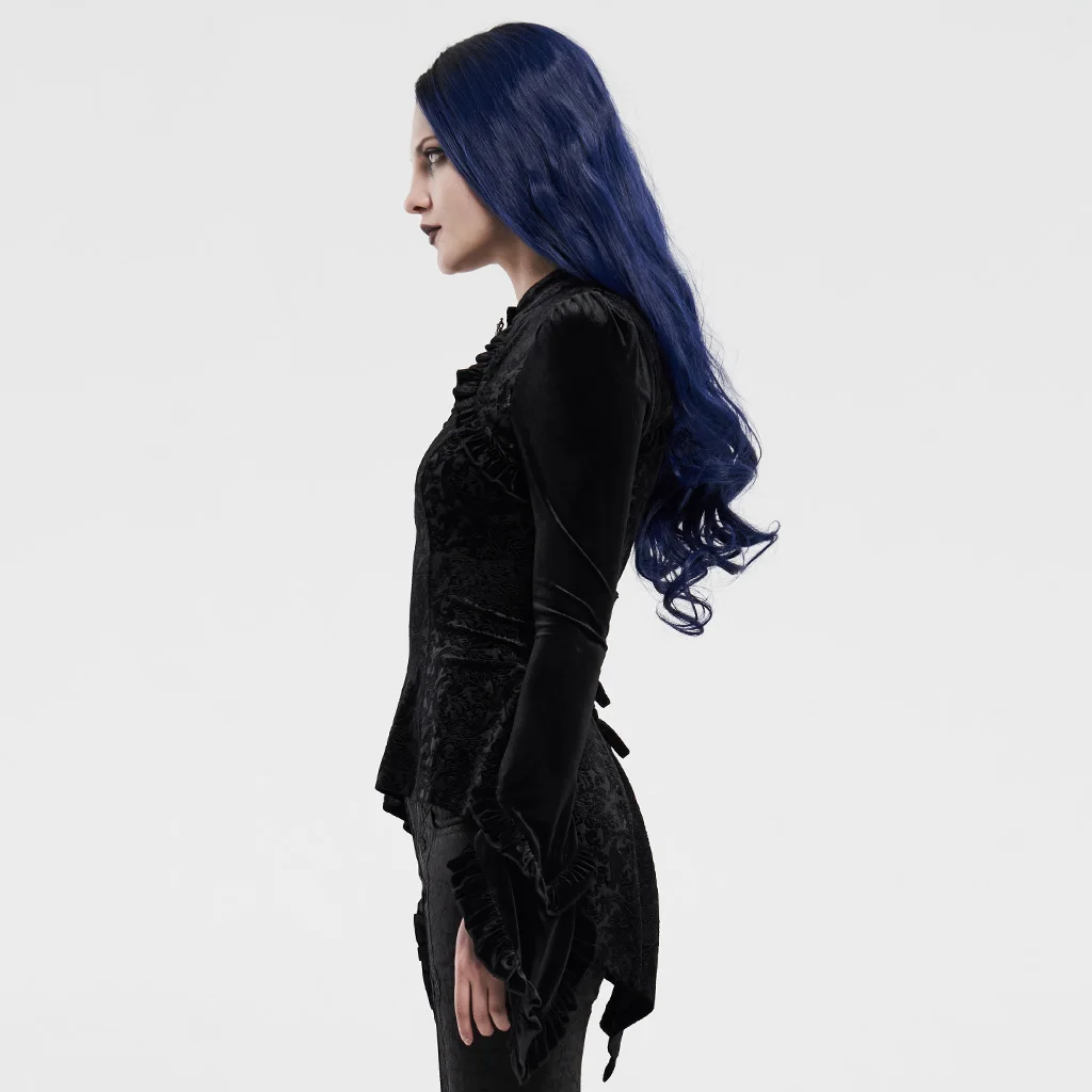 Женская футболка с длинным рукавом PUNKRAVE, Готическая бархатная футболка-бандо с асимметричным подолом и цветочным принтом для выступлений на сцене