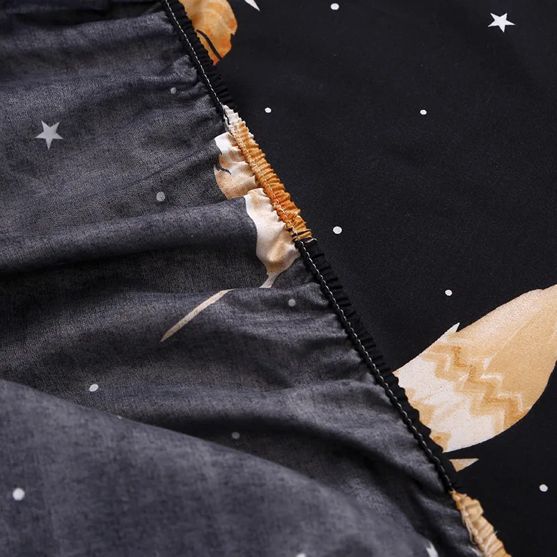 Комплект постельного белья черного цвета с принтом перьев и наволочкой