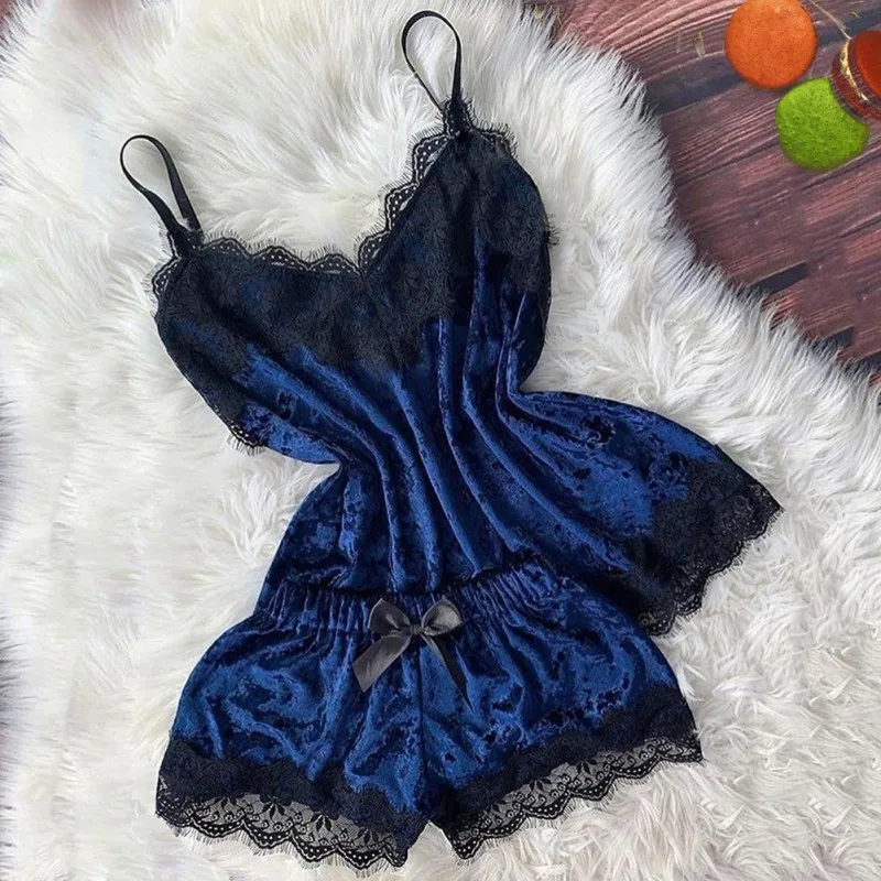 Летняя Пижама для женщин, Сексуальный Атласный пижамный комплект, кружевная Пижама с V-образным вырезом, милая майка без рукавов и шорты для женщин