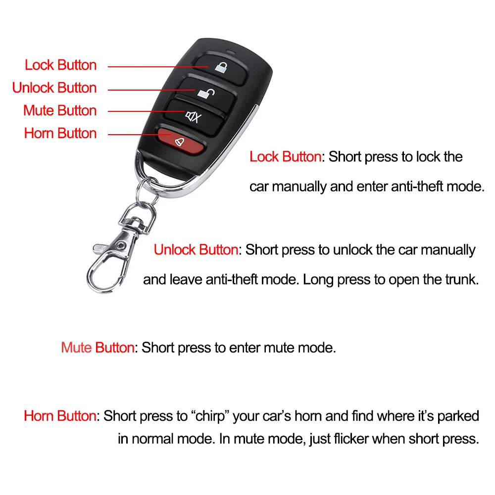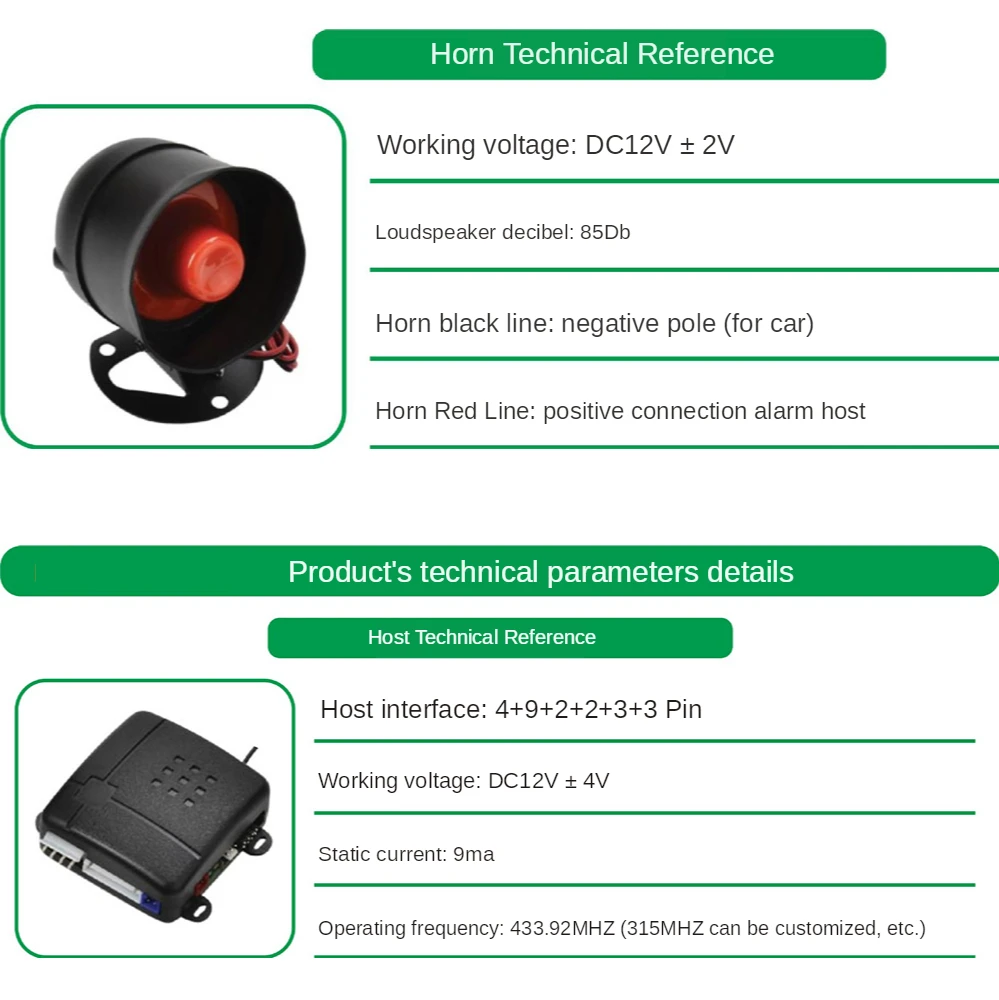 Автомобильная сигнализация, 1-сторонний пульт дистанционного управления, центральный дверной замок, бесключевая система с 2 пультами дистанционного управления, защита от взлома, система безопасности