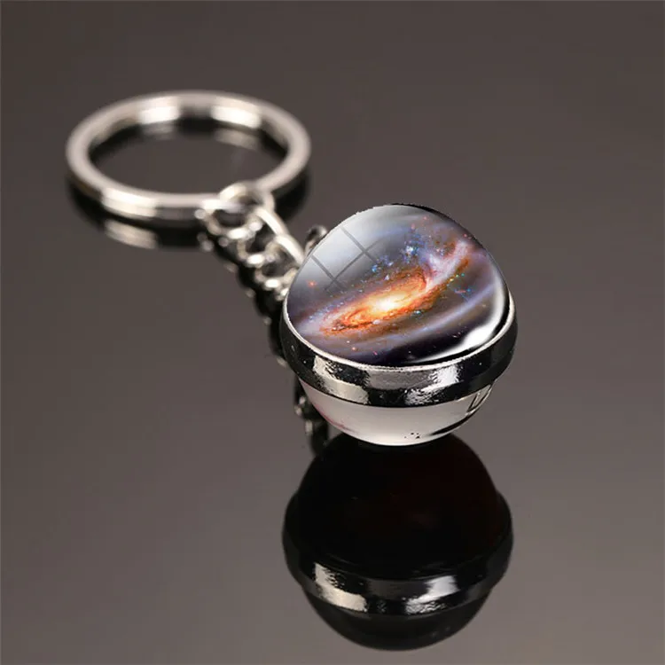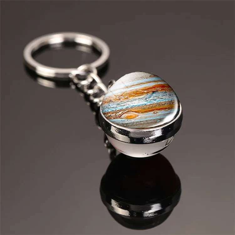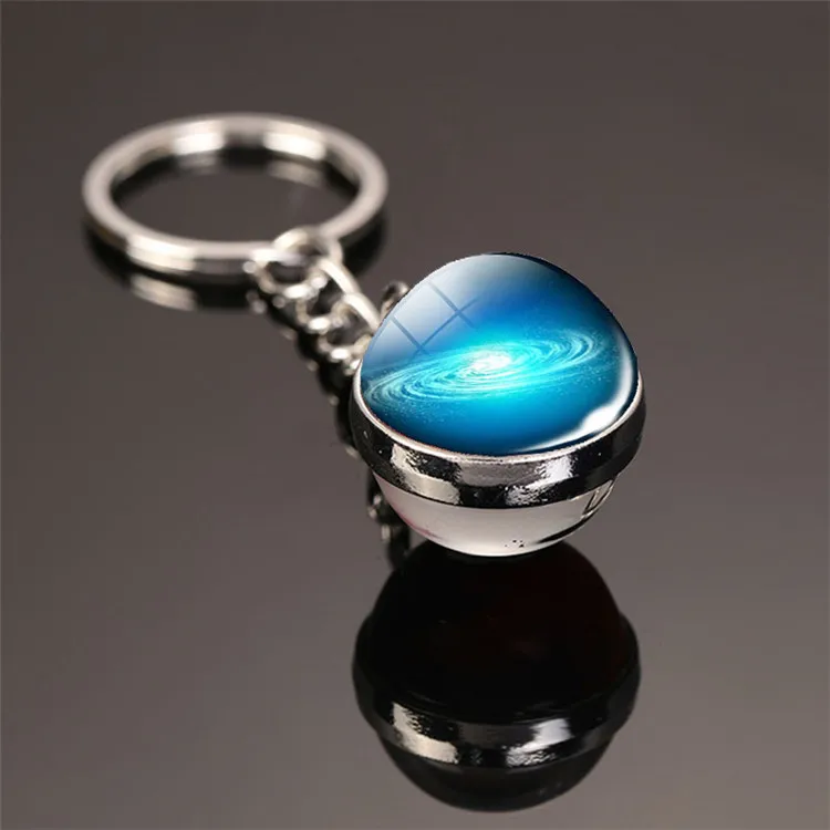 Брелок для ключей Galaxy Planet, трендовая солнечная система, художественная картинка, стеклянный шар, брелок для ключей, луна, земля, двойная сторона, стеклянный шар, автомобильная цепочка для ключей