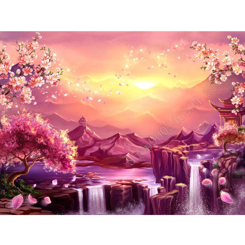5d алмазная живопись в виде цветка вишни, страна чудес, квадратная круглая Алмазная вышивка, украшение водопада, наклейки на стену FF2883