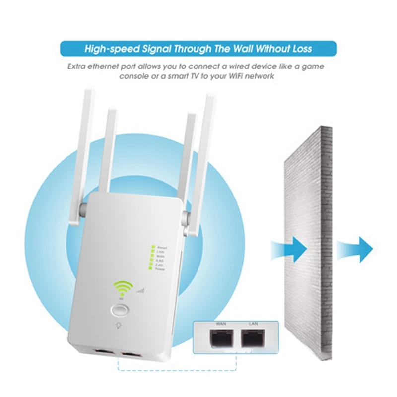 Усилитель сигнала ретранслятора Wi-Fi 1200 м беспроводной маршрутизатор сетевой расширитель 2,4/5,8G WiFi 2 порта (штепсельная Вилка европейского стандарта)