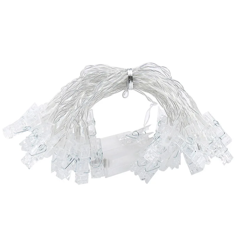 Светодиодная гирлянда с зажимами, подвесной светильник на батарейка...