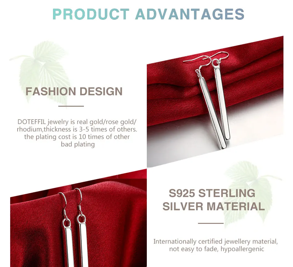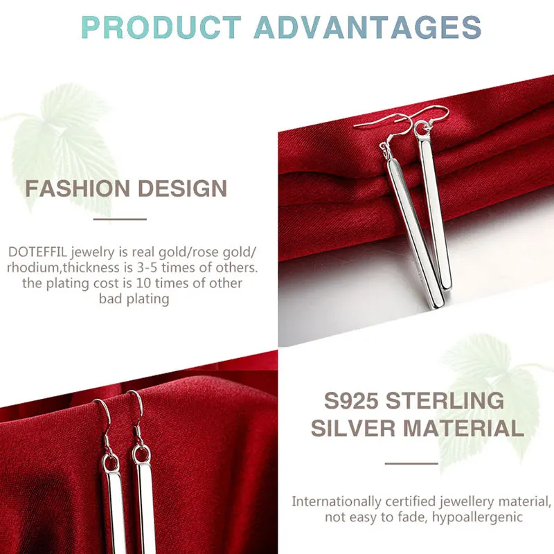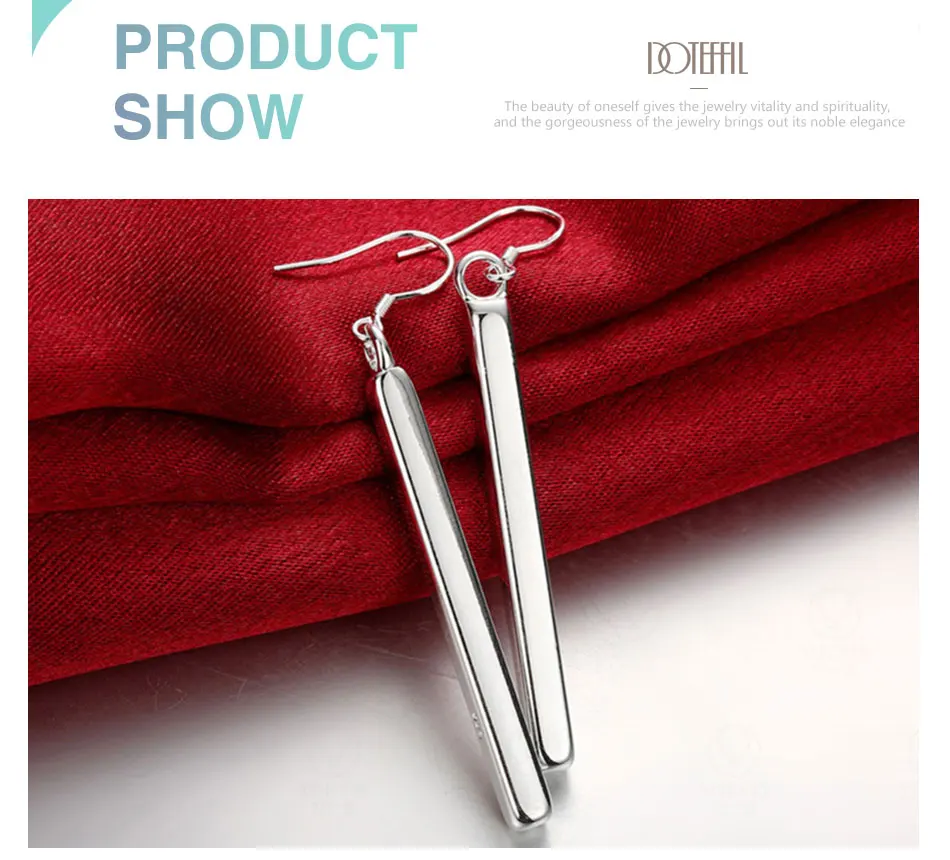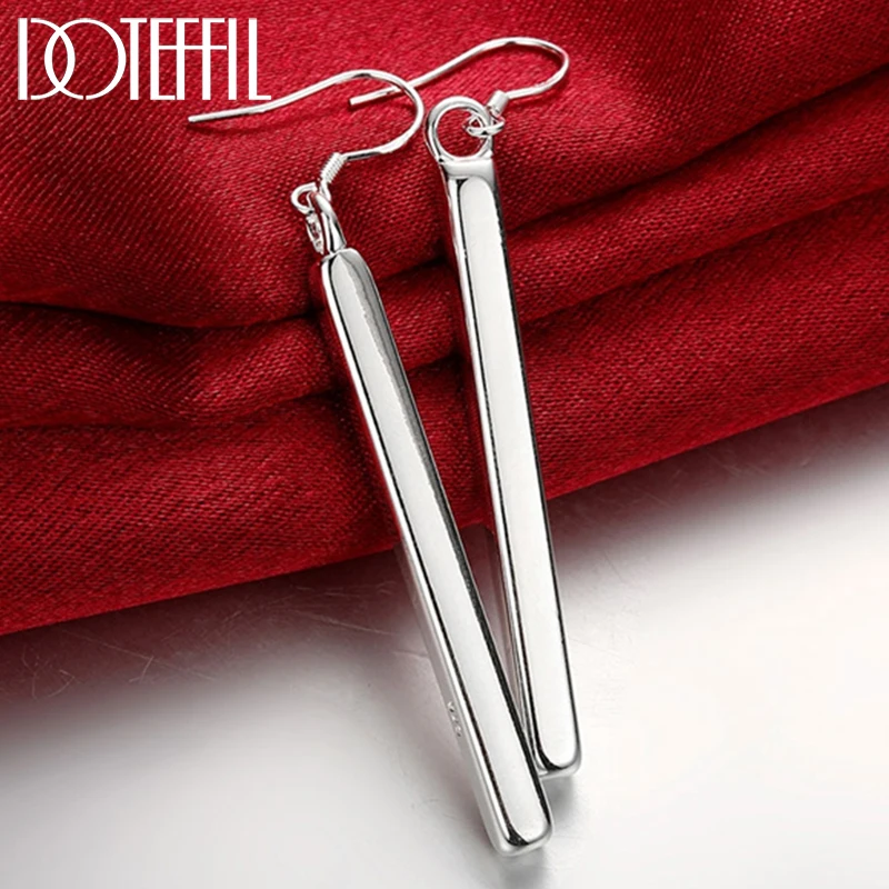 DOTEFFIL, Стерлинговое Серебро 925 пробы, гладкие маленькие цилиндрические длинные серьги, очаровательные женские ювелирные изделия, Модный свадебный подарок для вечеринки