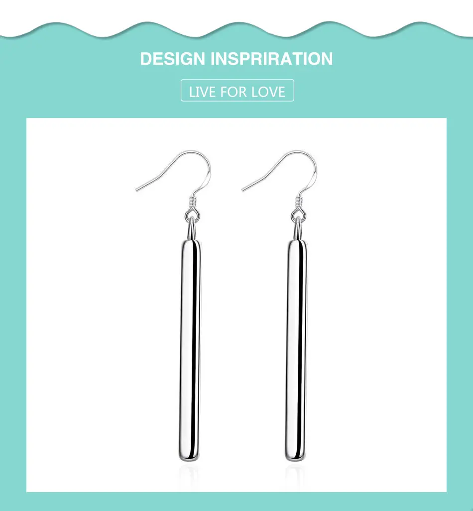 Женские длинные серьги из серебра 925 пробы, с гладкой поверхностью
