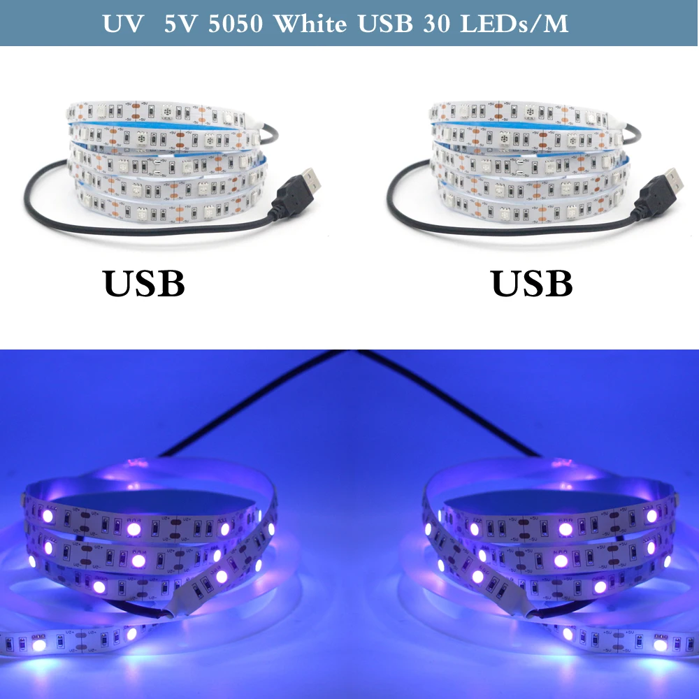 Ультрафиолетовая Светодиодная лента SMD5050, с USB-выключателем, не водонепроницаемая, для диджея, ФЛУОРЕСЦЕНТНОЕ Изображение тела, 5В, 395-405 нм