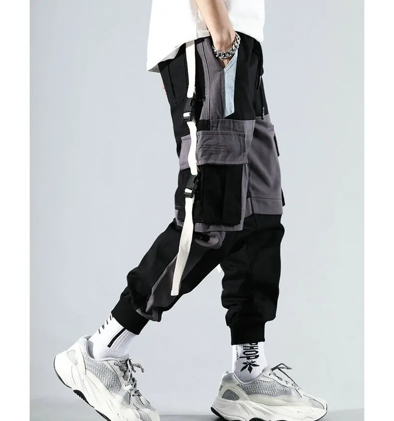 Джоггеры-шаровары с лентами, мужские брюки-карго, уличная одежда 2022, повседневные спортивные брюки в стиле хип-хоп с карманами, мужские Модные брюки в стиле Харадзюку