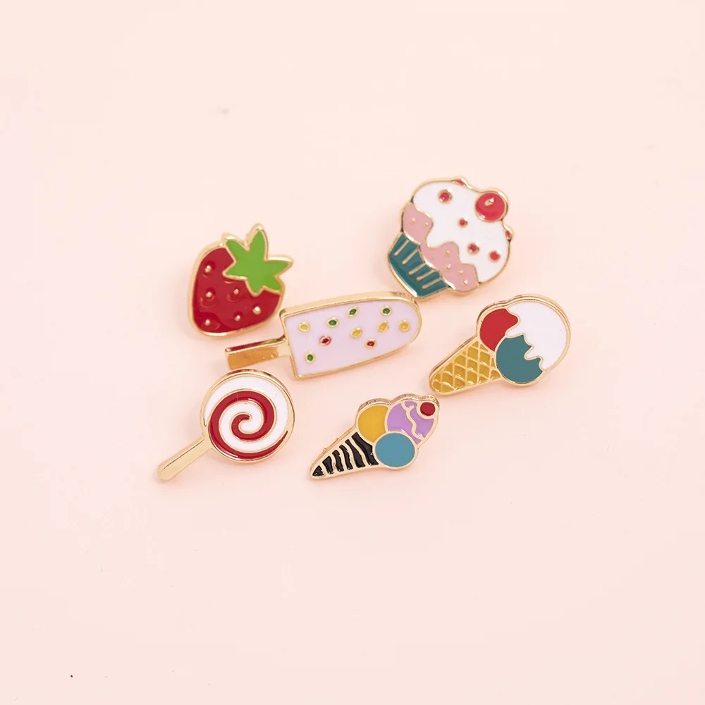 Мороженое клубничное, фруктовый леденец на палочке торта эмалированная брошь-кнопка Сумка Одежда штырь отворотом Саше вдали значок мультфильм, ювелирное изделие, подарок для детей