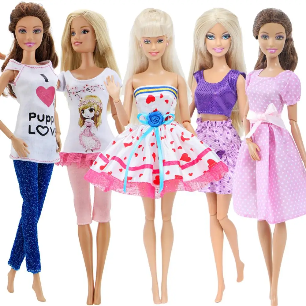Наряд для куклы ручной работы 5 шт.компл. розовое платье волнистая Юбка Топы Брюки Одежда для куклы Барби аксессуары 12 дюймов детская игрушка
