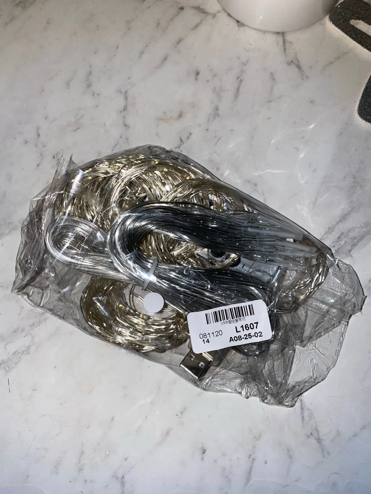 выглядит как проволока со светодиодами, но аккуратно упакована; все работает, пришла в обычном пакете