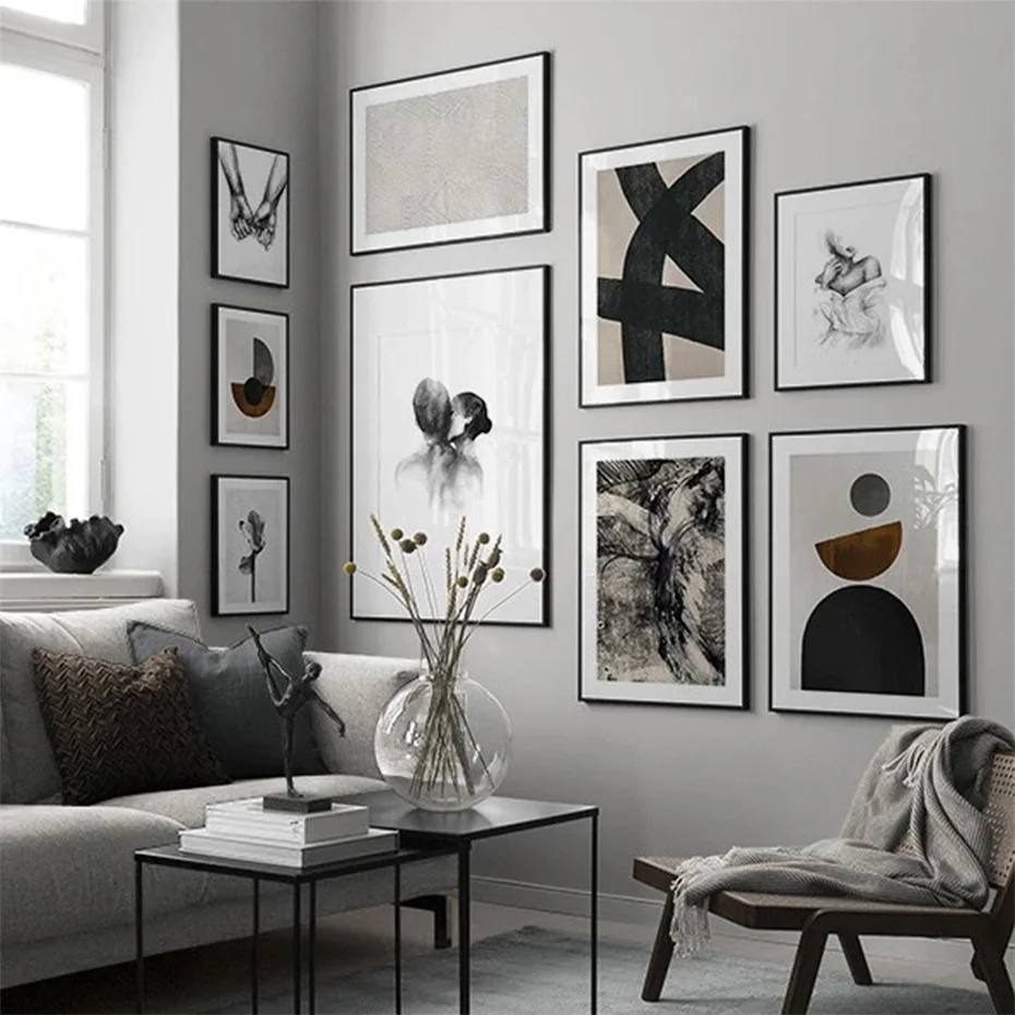 Абстрактная Геометрия, черный, белый, поцелуй руки в руке, ретро, холст, живопись, настенный постер, печать, картина, украшение для дома, гостиной