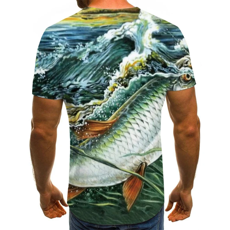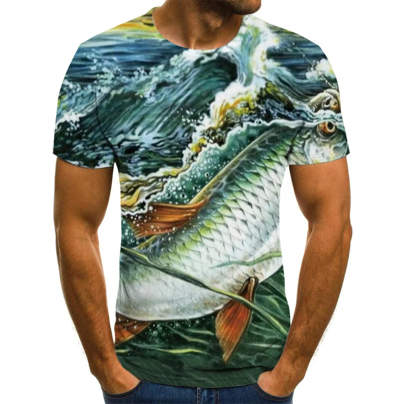 Футболка мужская с 3D-принтом рыбы, круглый вырез, короткий рукав, ...
