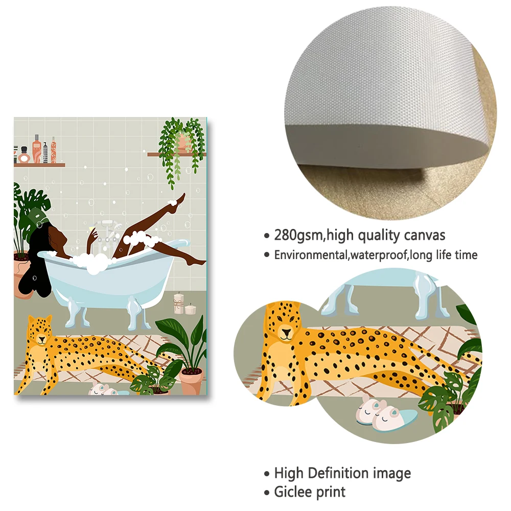 Плакат с изображением животных в ванне, принт жирафа, верблюда, сло...