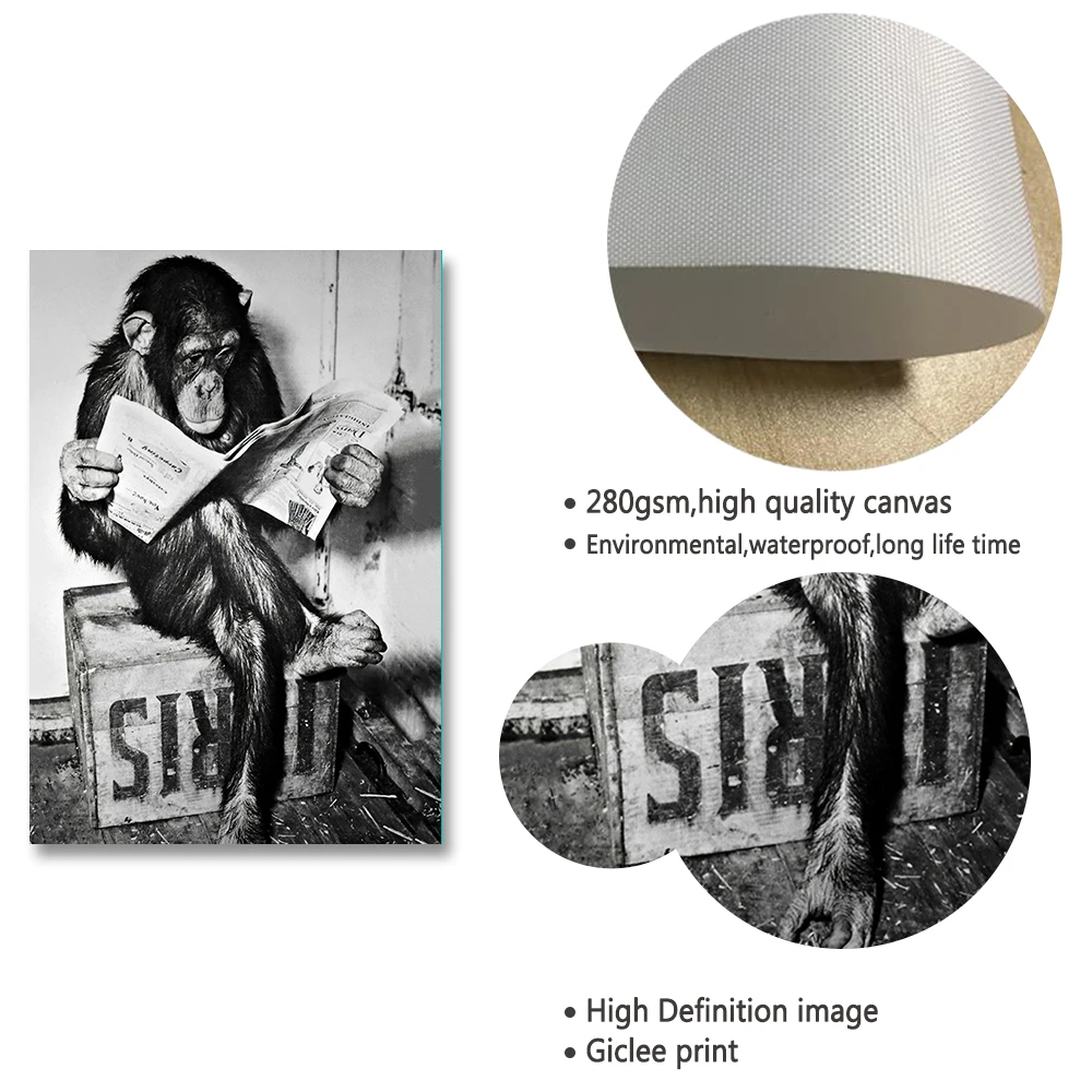 Забавный бизнес-плакат с обезьянкой и принтом на стене для чтения газет живопись Санузел декор для туалета черно-белое художественное изображение