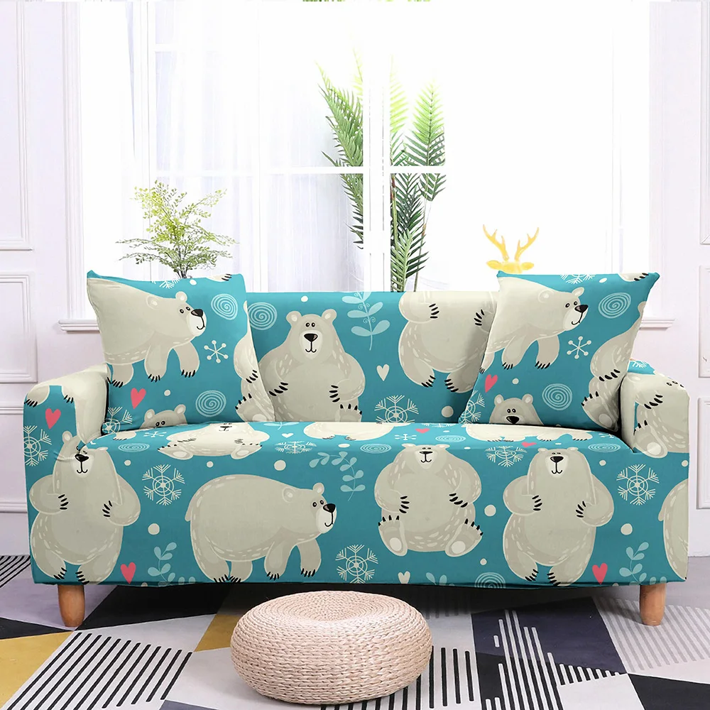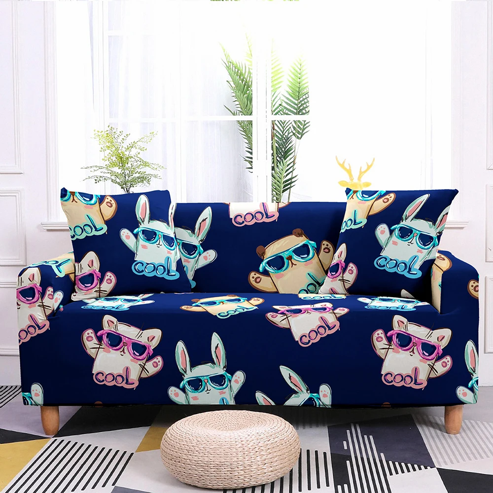 Милые эластичные Чехлы для дивана с мультяшными животными для гостиной, чехол для дивана с рисунком медведя, кошки, кролика, защитный чехол для дивана, домашний декор
