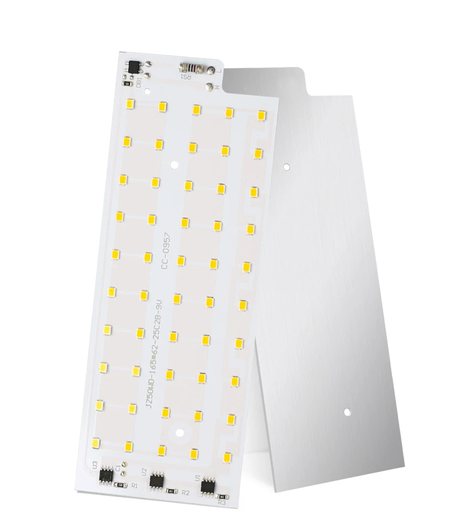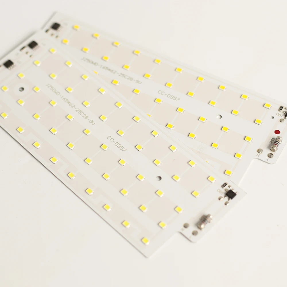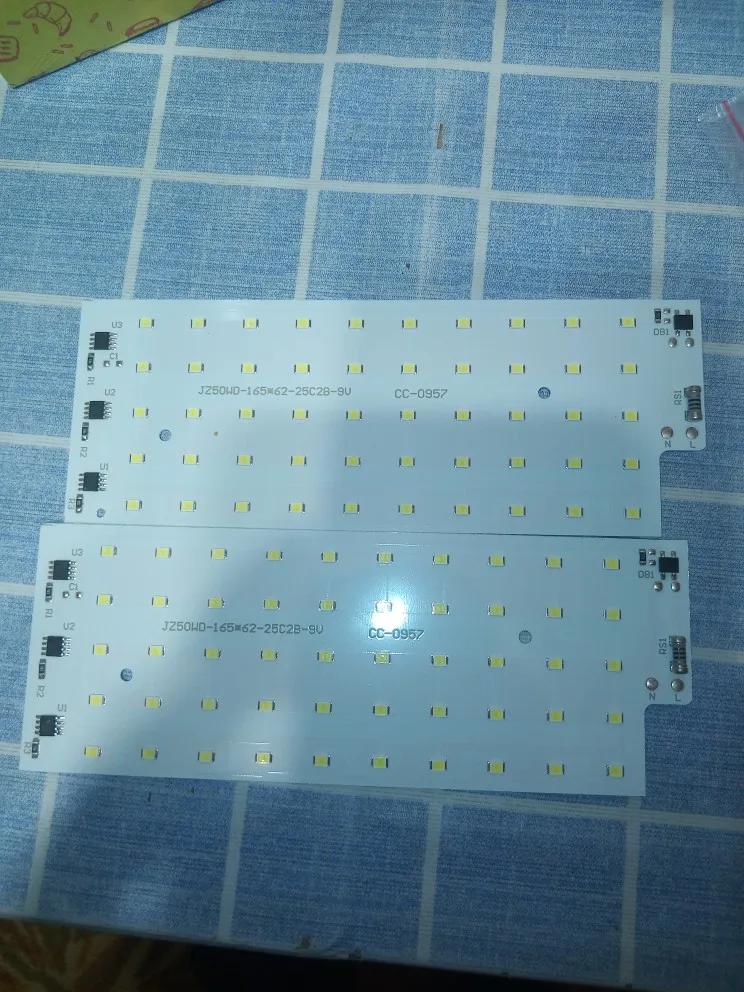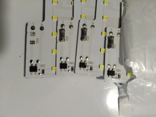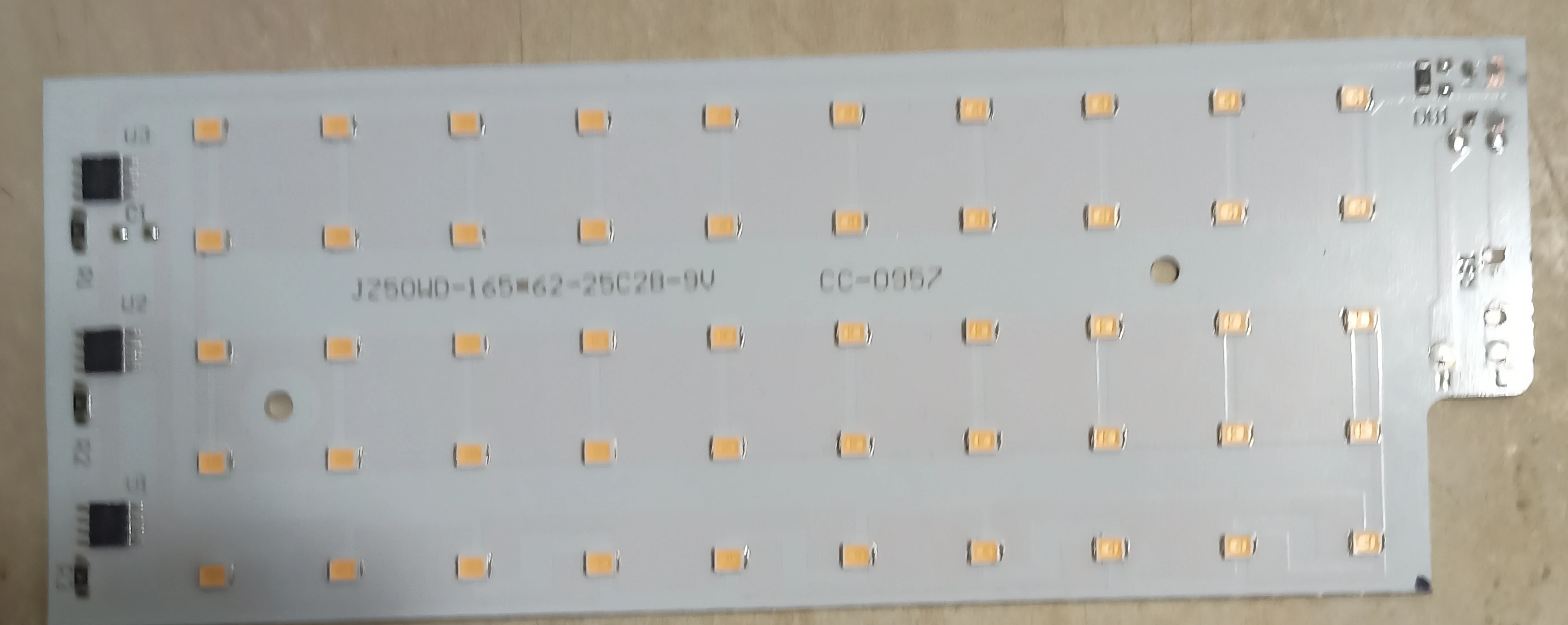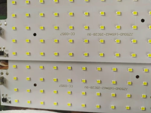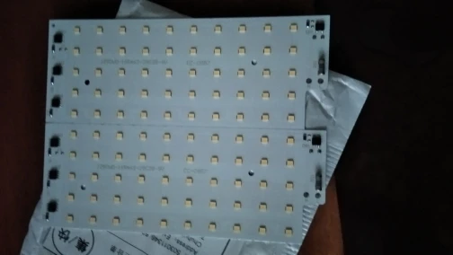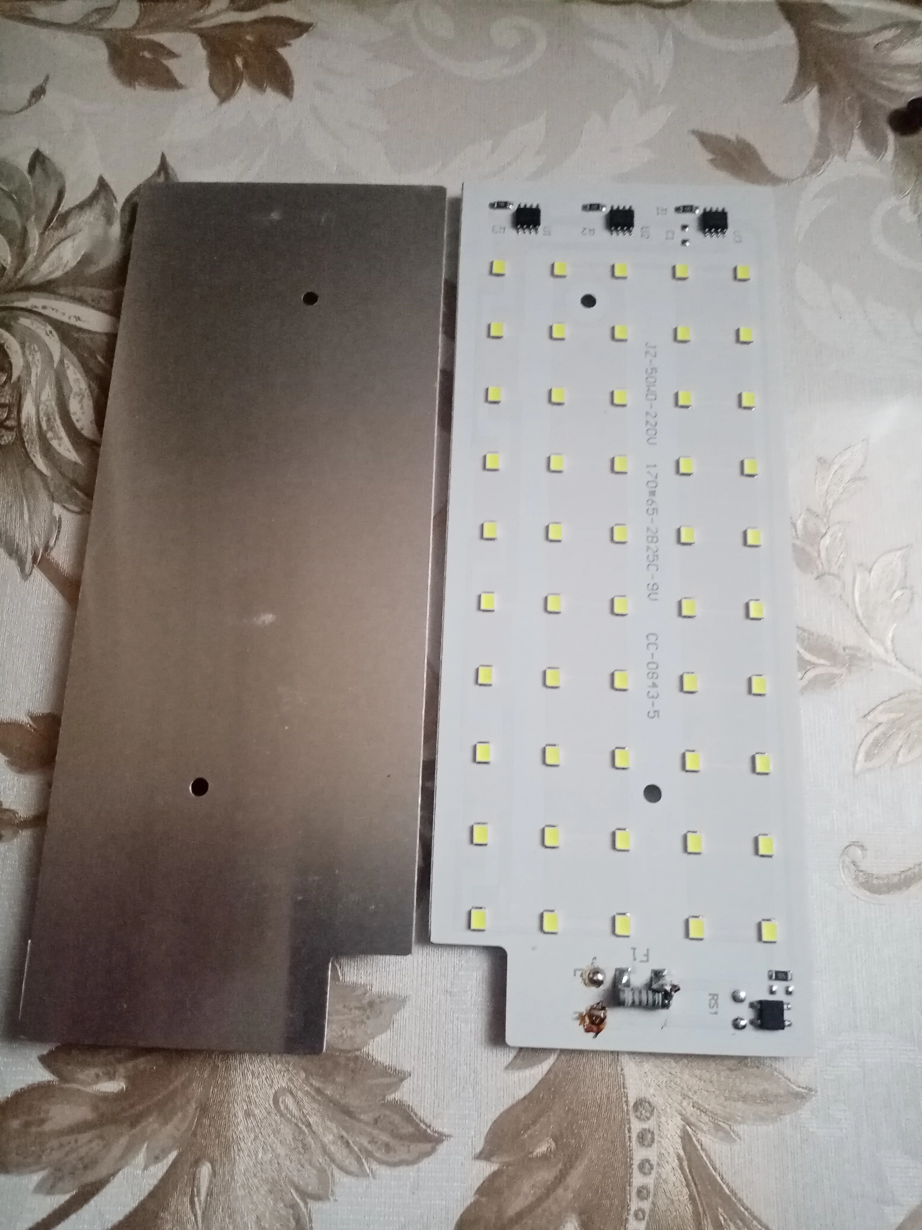 Пришло быстро, с продавцом не общался. Упаковано очень плохо. почтовый пакет с пупыркой. Мне кажется что платы так упаковывать не стоит. Но у меня посылка шла с другими в комплекте и все обошлось. Работает от 220. Платы сильно греются, необходим теплоотвод, иначе сетодиоды долго не прослужат. Плата на алюминиевой подложке. Крепления 2 отверстия. На передней стороне распаяны 50 светодиодов 25 параллельных пар последовательно, токоограничивающий резистор, выпрямитель и 3 параллельных транзистора. качество пайки приемлемое, флюса нет, однако кое где торчат шары которые желательно убрать.