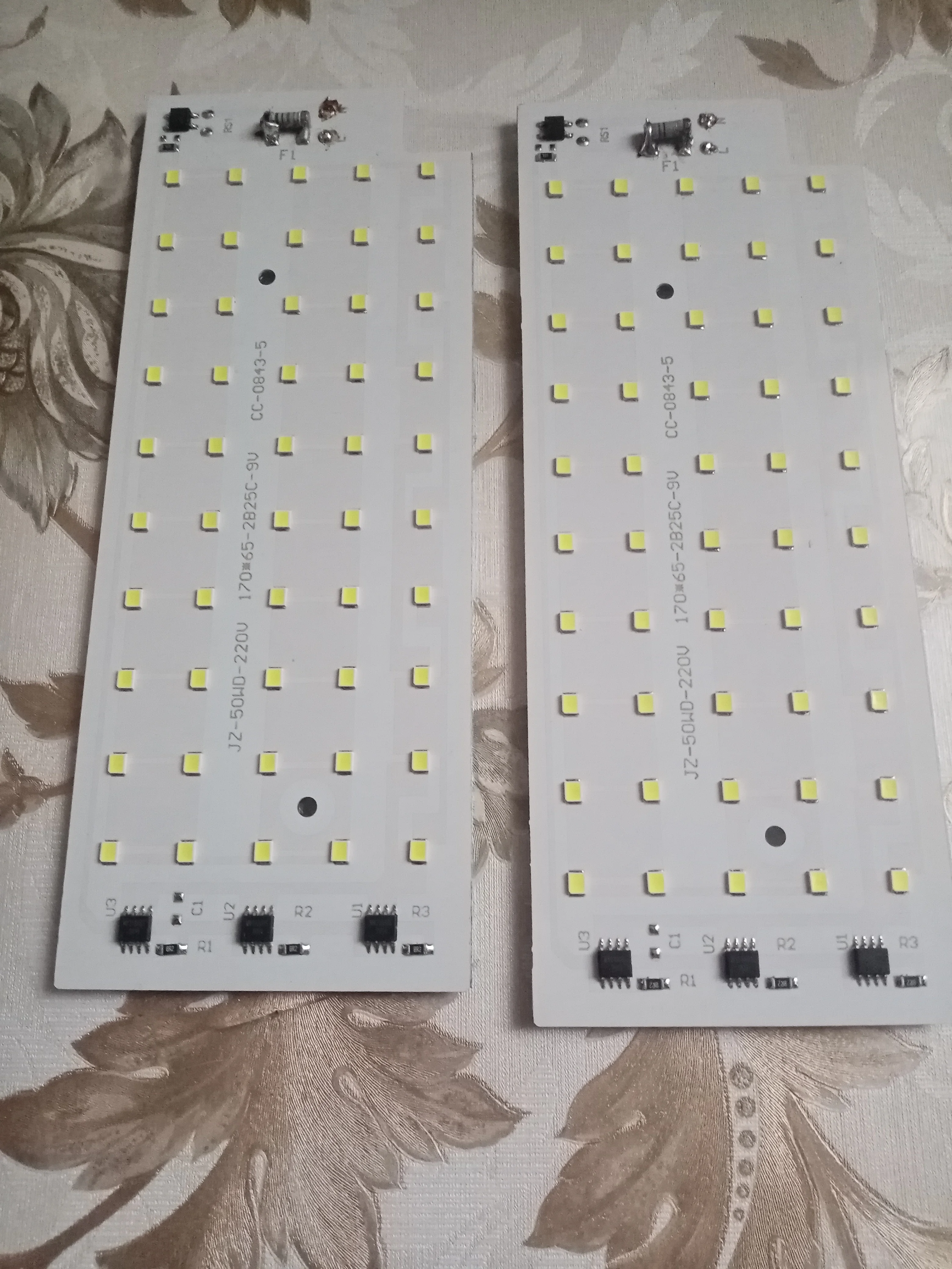 брав на заміну згорівшим(стрибнув струм) від другого продавця. ці трохи по іншому виглядають, але в старі корпуса стали без питань. параметри ще не заміряв. світять добре. брав ще й для рослин парочку панелей повного спектру. випробую на розсаді в теплиці.
