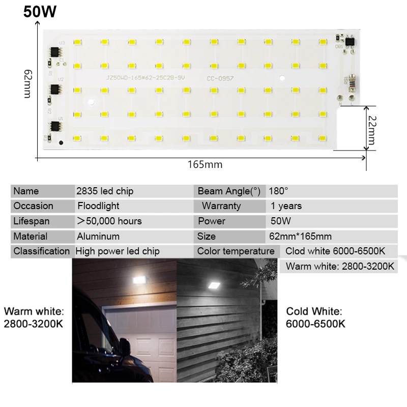 2 шт.лот 50 Вт светодиодные лампы SMD 2835 Светодиодный чип Smart IC прожектор 220 в 240 В открытый DIY Светодиодная лампа прожектор освещение