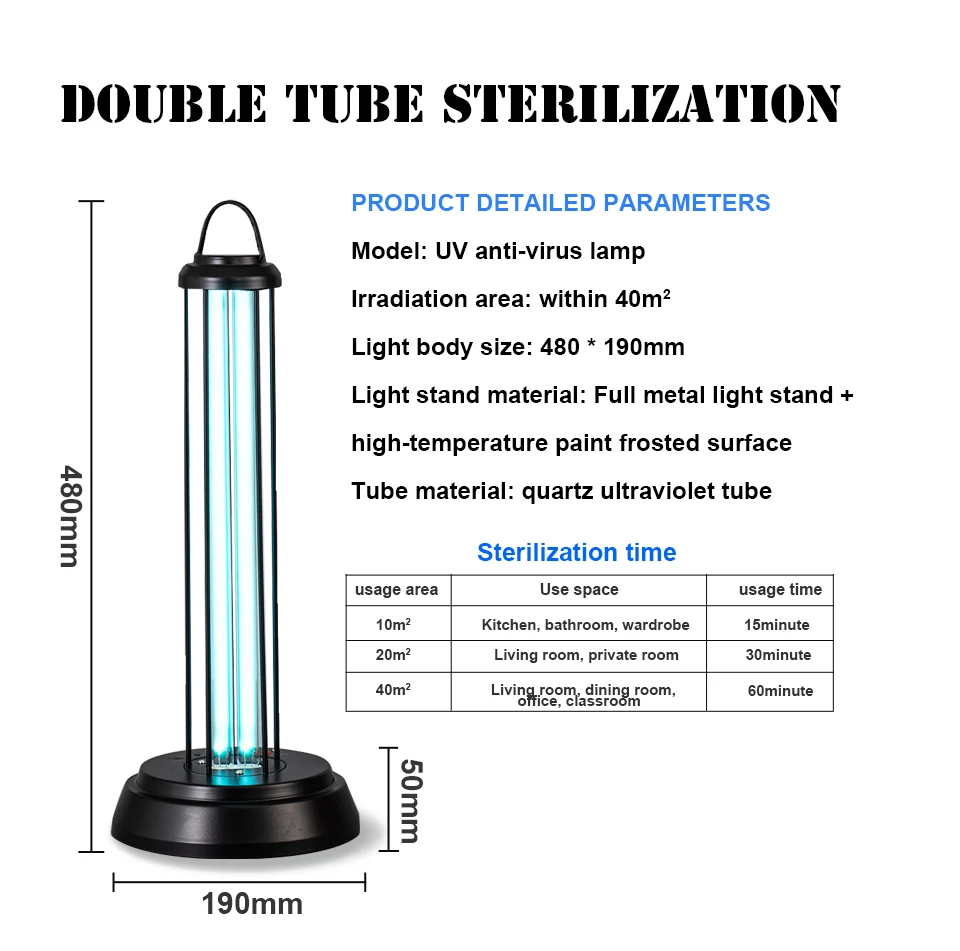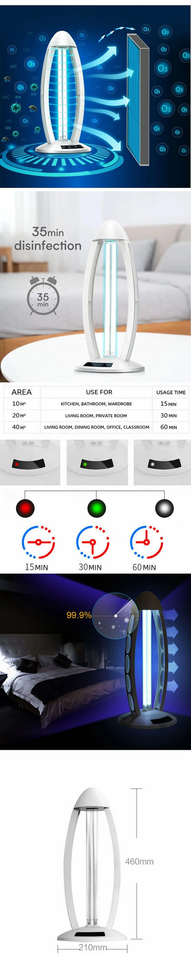 1. Мощность 38 Вт подходит для 20-50 кв. М пространства, гостиной, спальни и других бытовых помещений, 15 мин быстрой стерилизации и дезинфекции.