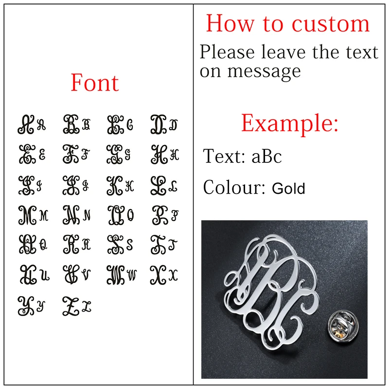 Брошь с именем на заказ, золотая, из нержавеющей стали