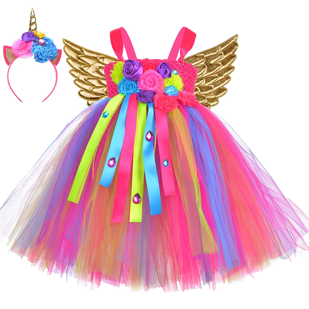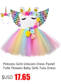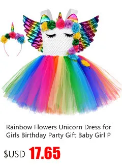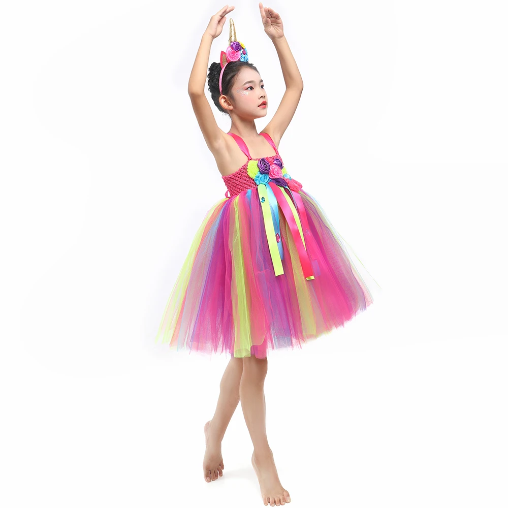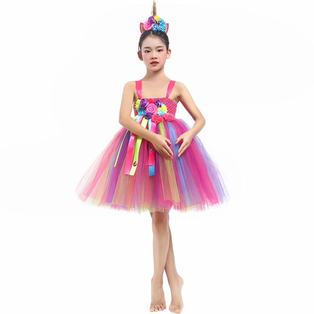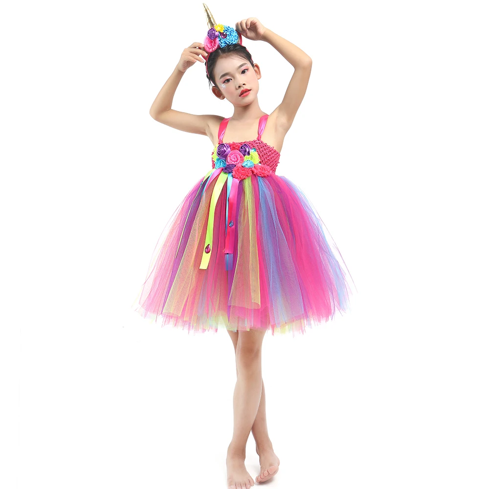 Костюм единорога для девочек, на день рождения, платье-пачка с радужными цветами для девочек, детское карнавальное платье принцессы на Хэллоуин