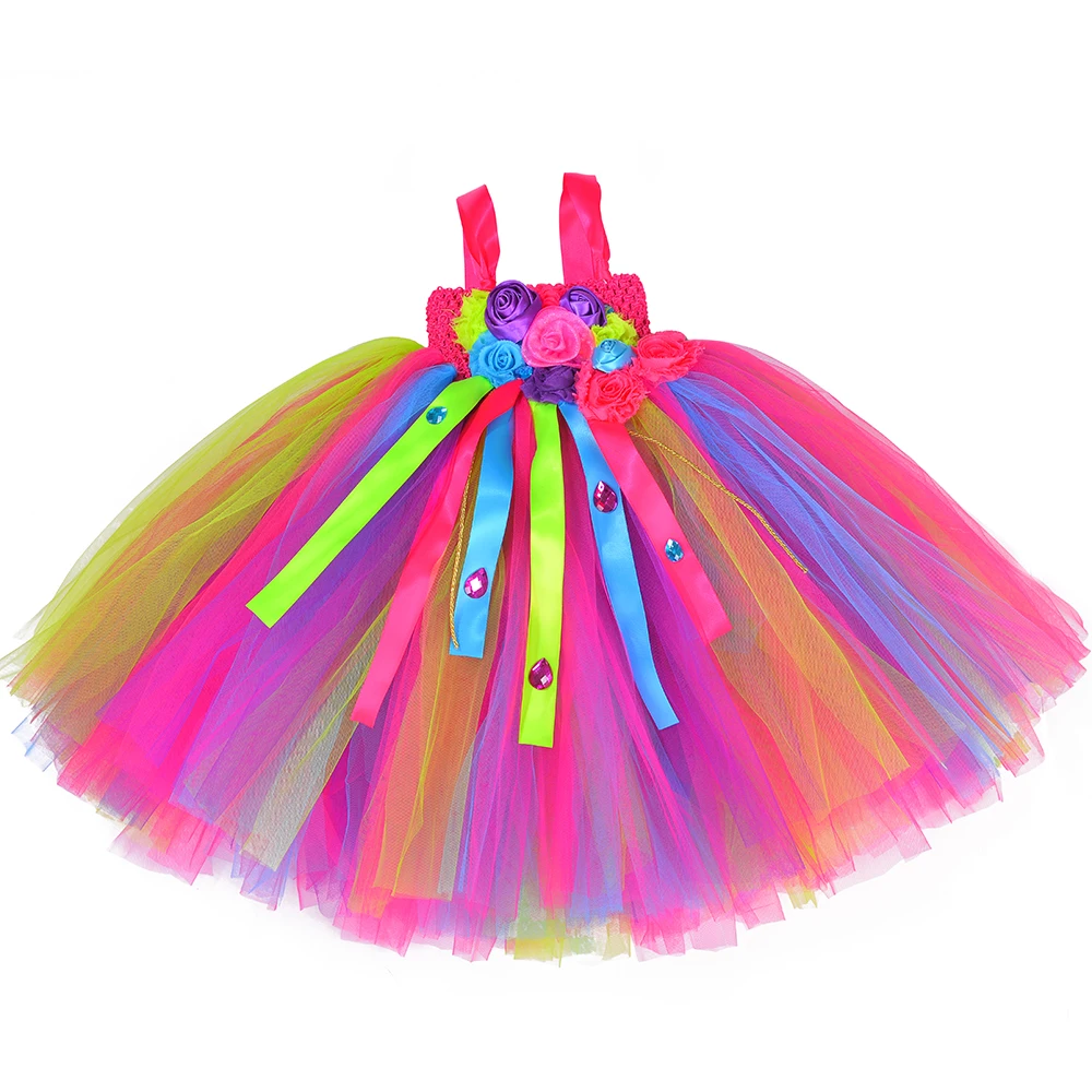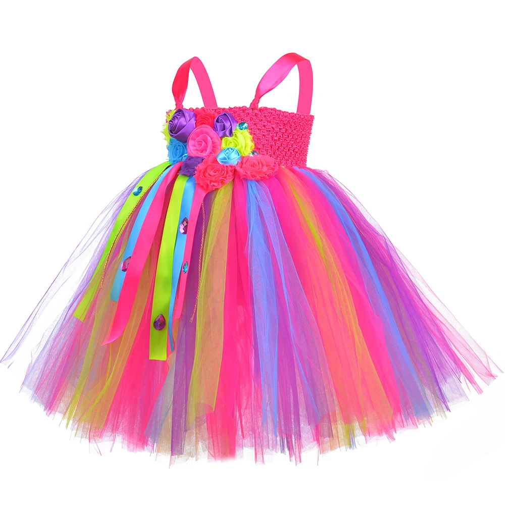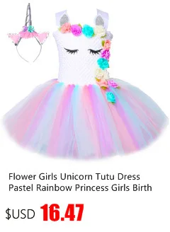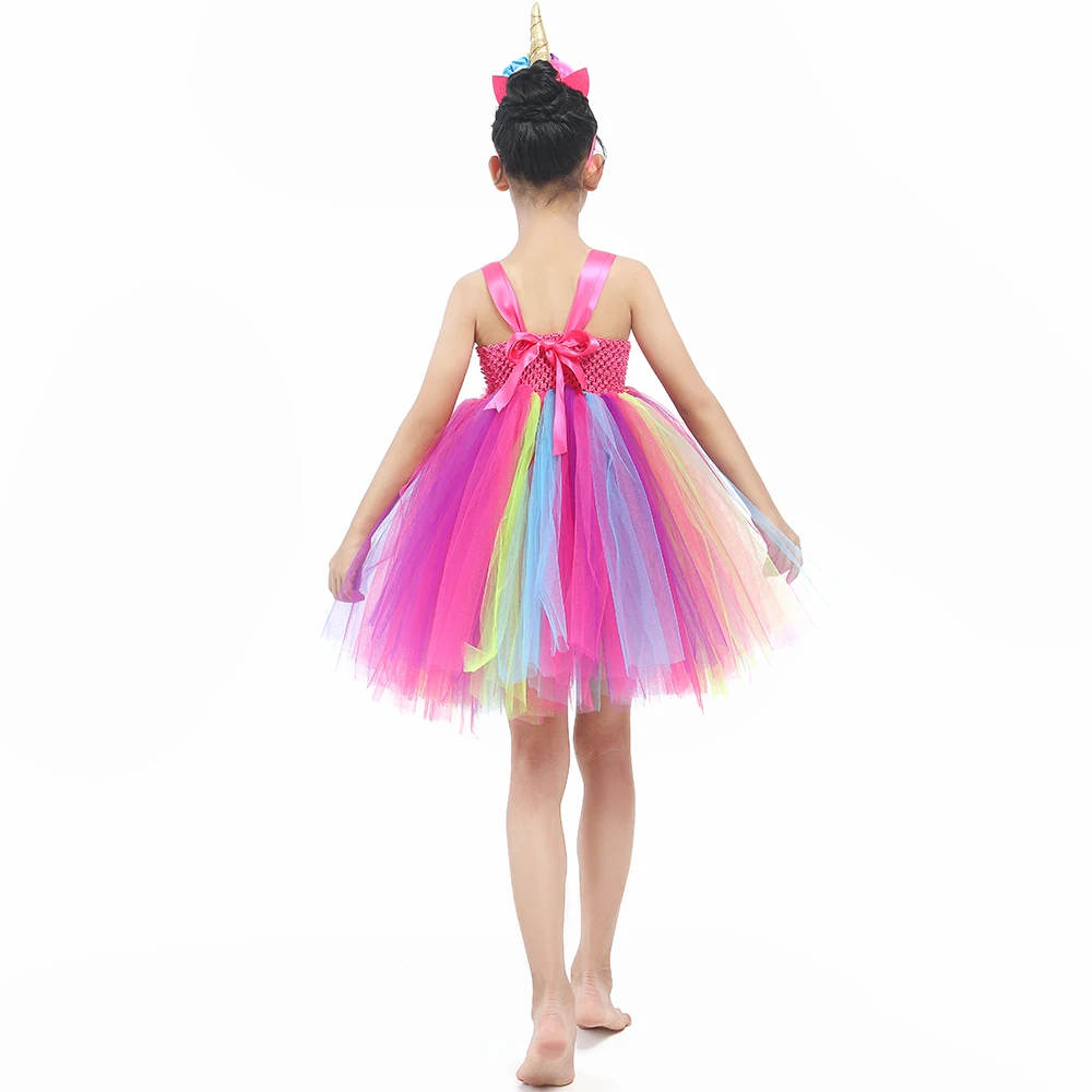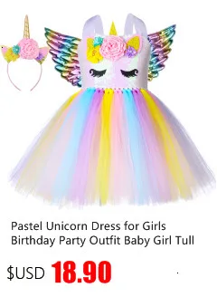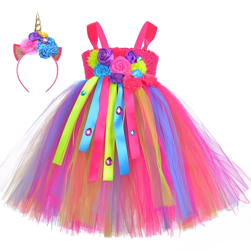 Костюм единорога для девочек, на день рождения, платье-пачка с радужными цветами для девочек, детское карнавальное платье принцессы на Хэллоуин