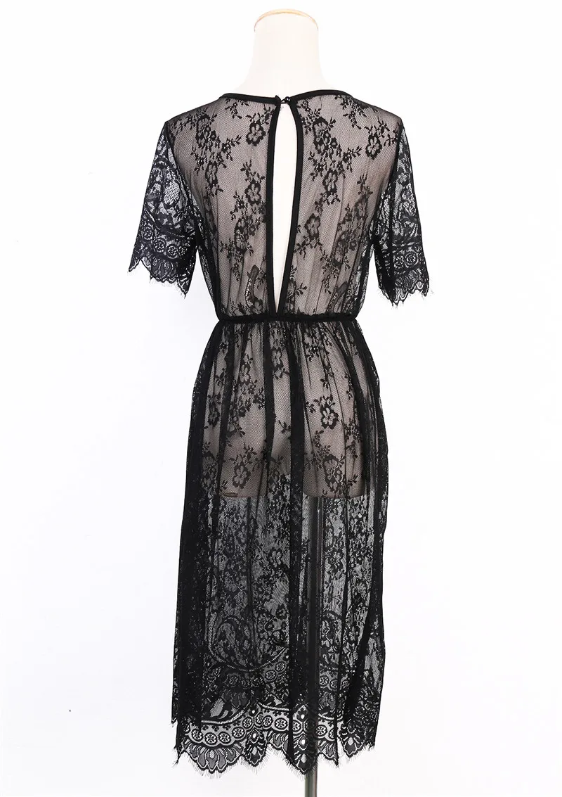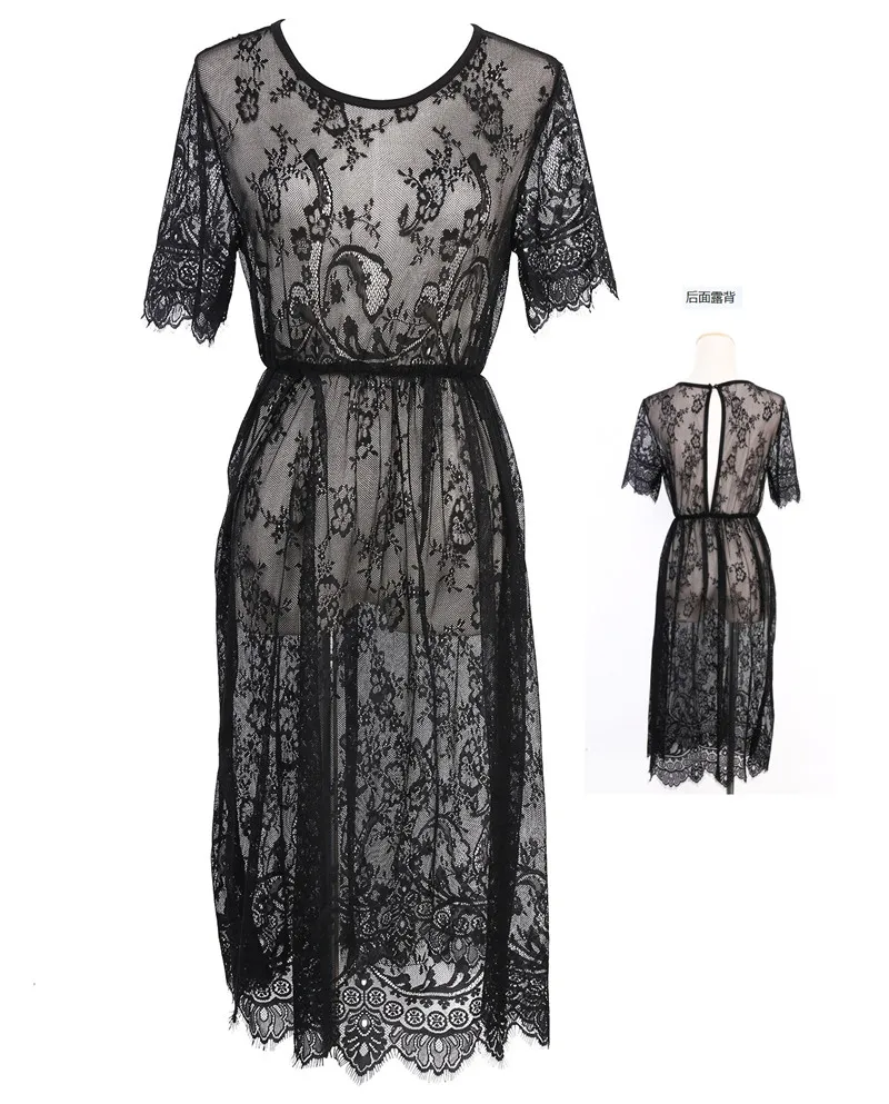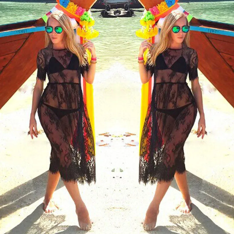 Женское летнее платье exy, пляжная одежда, прозрачное кружевное платье до колена с лямкой на шее и коротким рукавом, вязаное крючком бикини, летний купальник, накидка