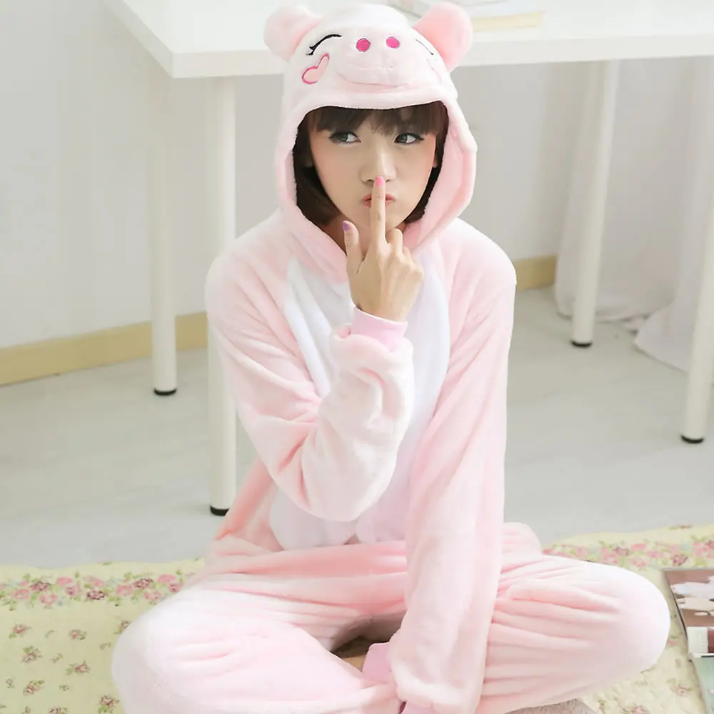 Мягкая ткань фланелевая теплая ночная рубашка свинка с капюшоном в одном доме пижамы для пары пижамы женские комбинезоны одежда для сна кигуруми одежда