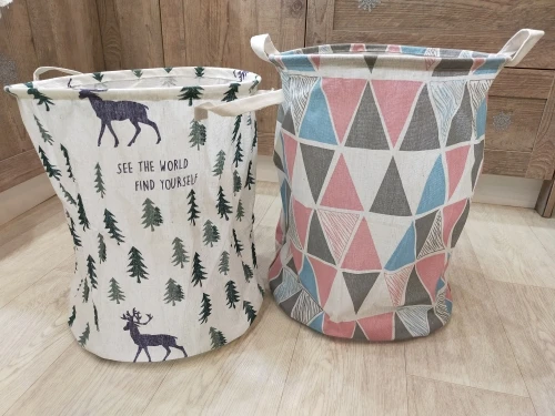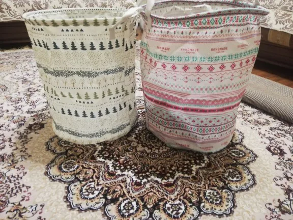 Заказывала 2 корзины. Качество отличается. Розовая: плотная, хорошо держит форму и она большая. С елочками: тонкая, плохо держит форму (потому что тонкая), мало пропитана непромокайкой, меньше размером, принт как-то не очень расположен - олень обезглавлен. Заказывала для детских игрушек. Пршли достаточно быстро (в районе 2х недель). С продавцом не общалась.