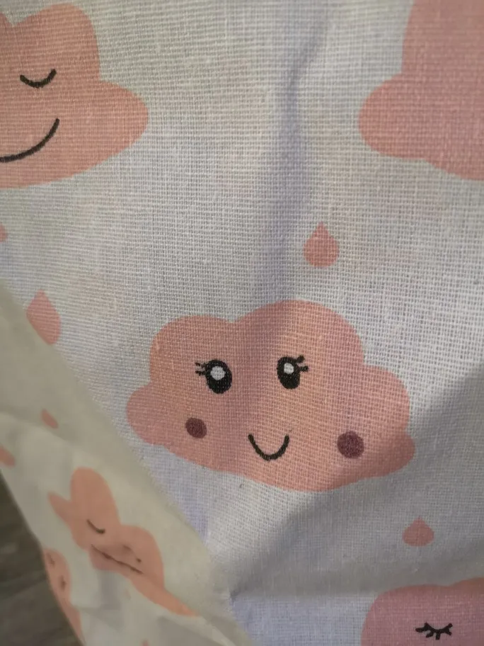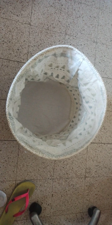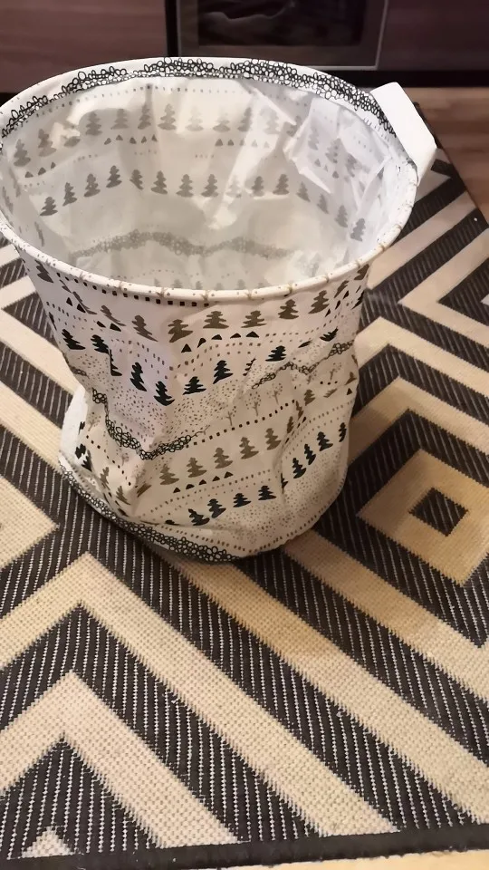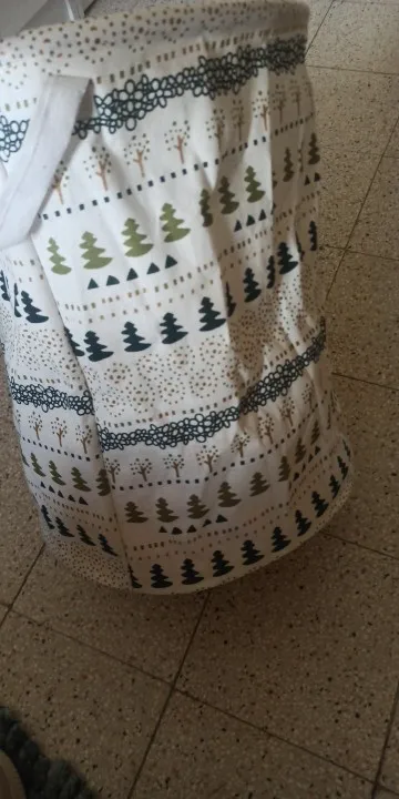 Очень быстрая доставка, посылка прибыла всего за 10 дней. Продукт, который действительно соответствует изображению, внешний хлопок/лен и внутренний полностью водостойкий пластифицированный, поэтому отлично подходит для очистки губки внутри. Тем не менее, зеленые дерева оторвались в местах (Звезда удалена для этого), но мы можем изменить сторону, чтобы это не было видно.