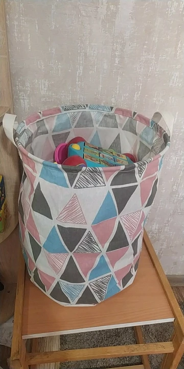 отличная корзина!!!! очень вместительная, используем под игрушки. хорошо держит форму,пришла почти не мятая! рекомендую продавца