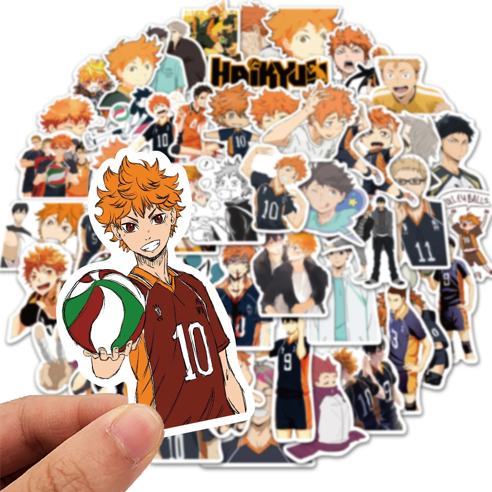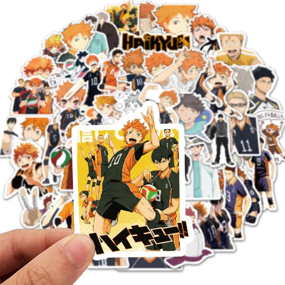 52упаковка, Мультяшные Аниме Haikyuu наклейки, Забавный скейтборд, ноутбук, гитара, водонепроницаемый багаж, граффити, наклейка для детей, игрушки