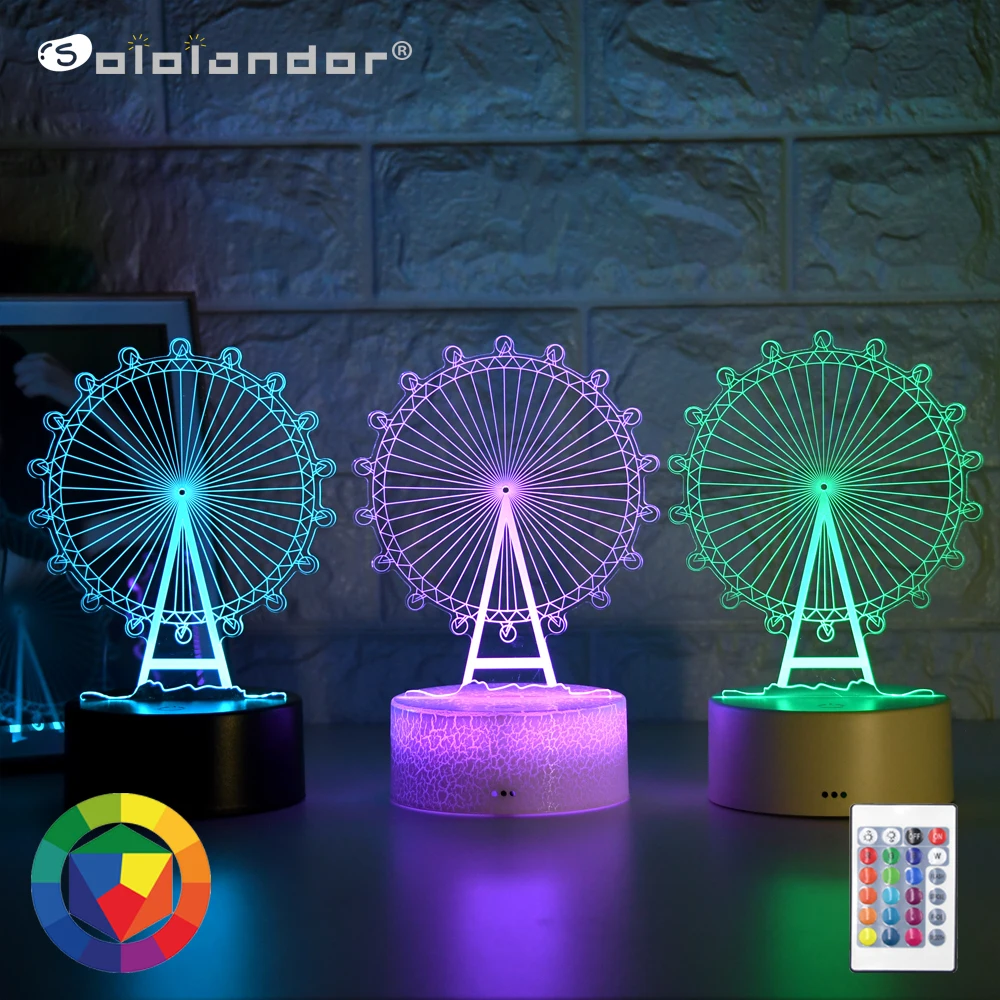 Новейший детский ночник, 3D светодиодный ночник, креативный Настольный прикроватный светильник, романтический светильник с колесиком обозрения для детей и девочек, украшение для дома, подарок
