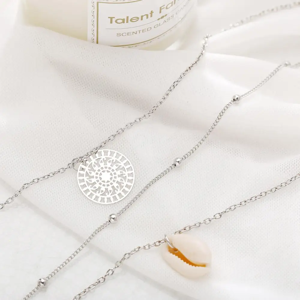 Богемное модное ожерелье для женщин, подвеска в виде ракушки, полые резные трехуровневые ожерелья, женское искусственное ожерелье