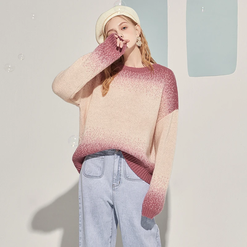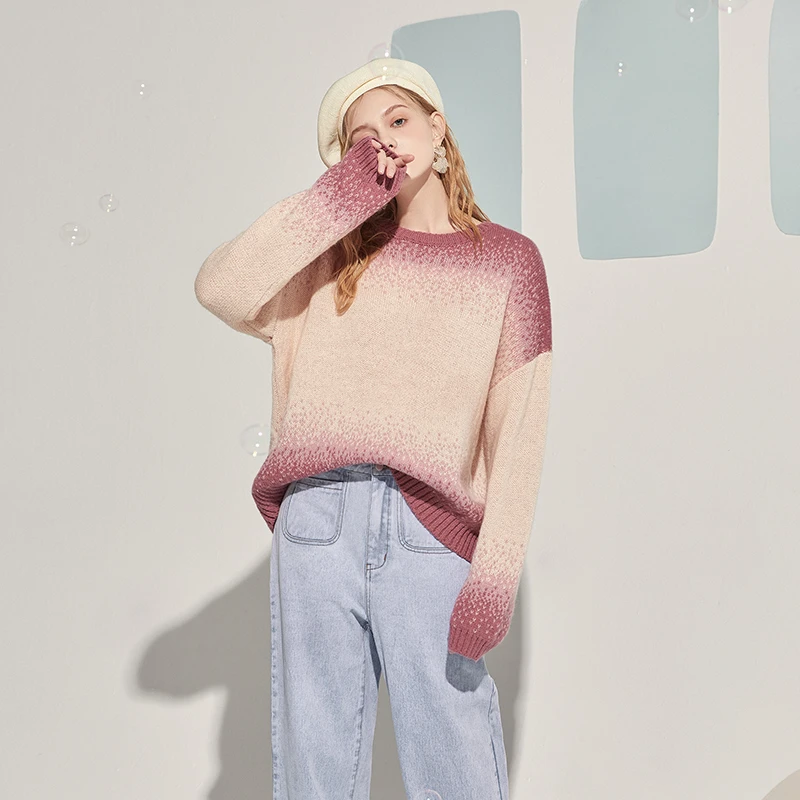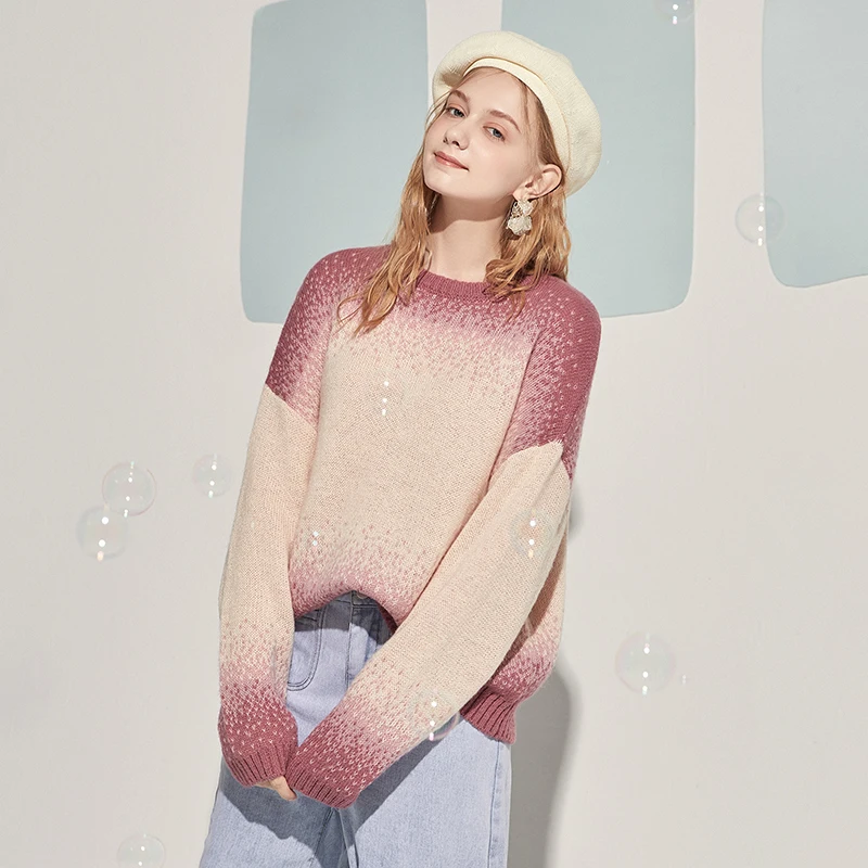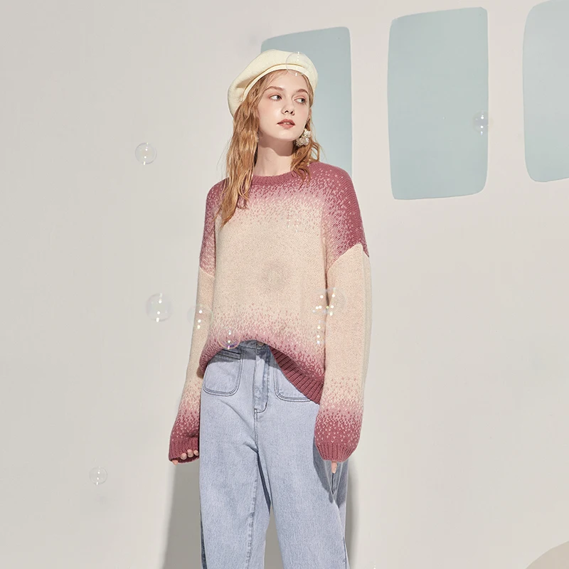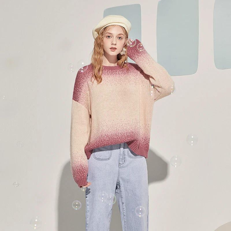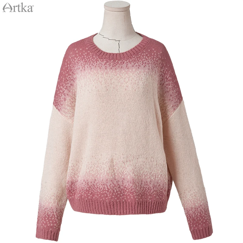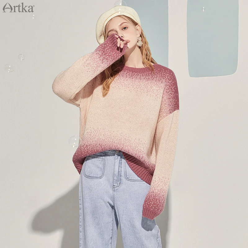 Женский мохеровый свитер с градиентом ARTKA, черный элегантный свободный шерстяной пуловер с круглым вырезом, YB20302Q, осень 2020