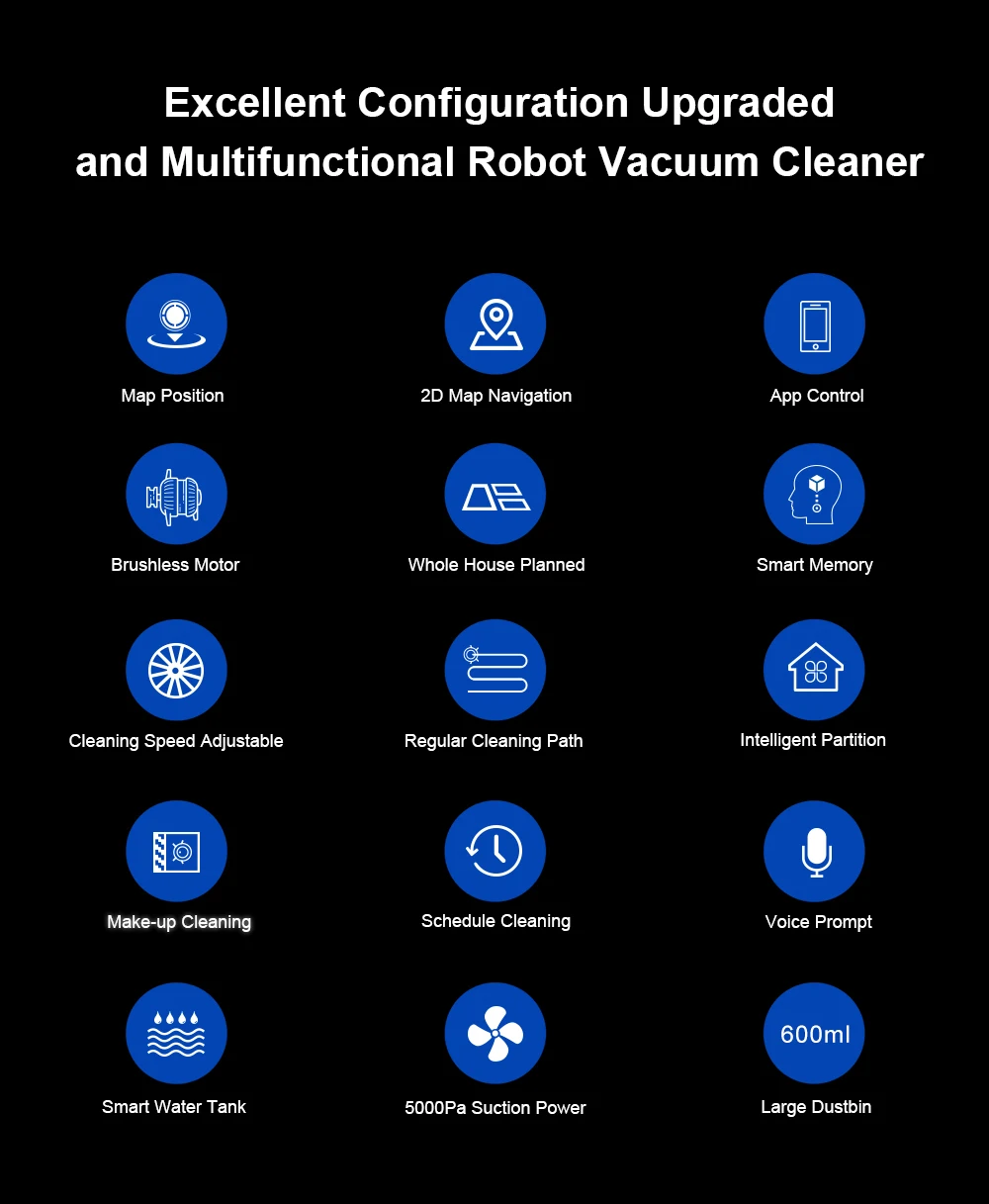 1. Робот может обнаружить всю окружающую среду вокруг, а затем построить карту внутри процессора, чтобы он сделал уборку с планом из одной комнаты за другой.