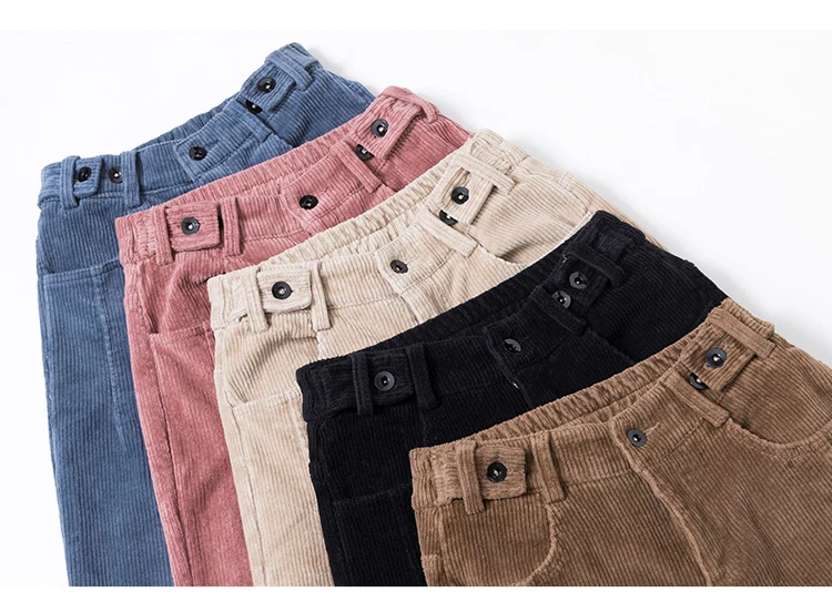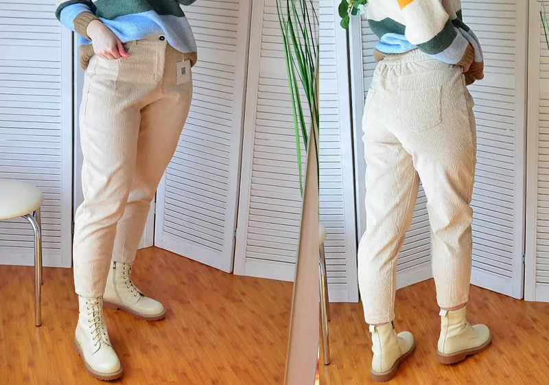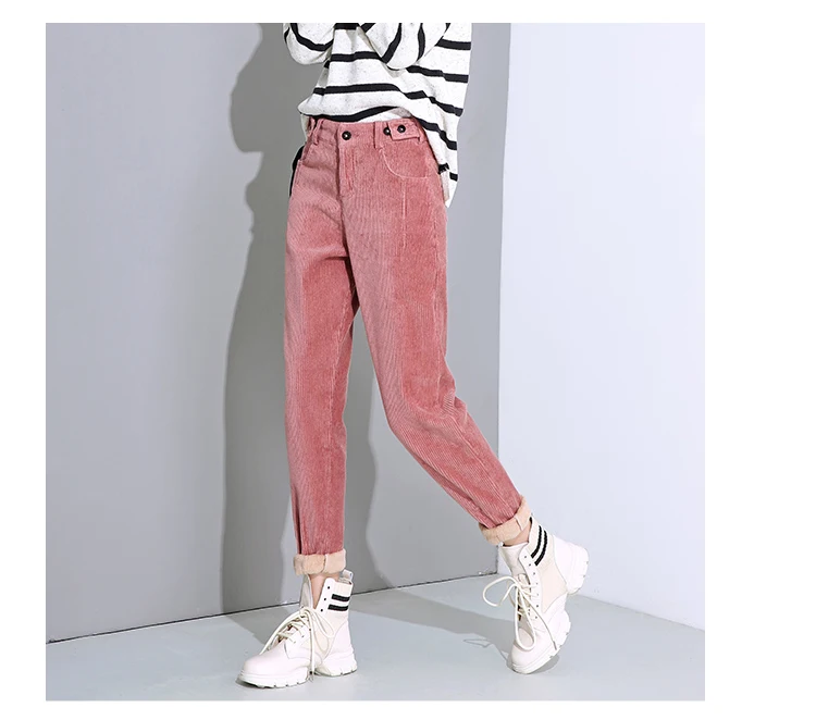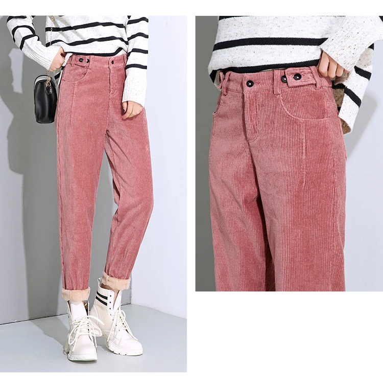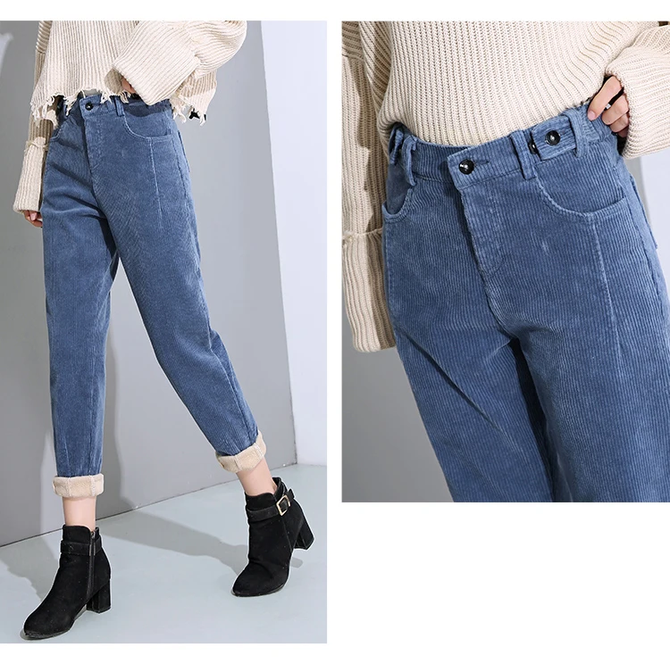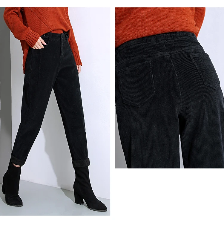 Брюки женские вельветовые, с высокой талией, черные, теплые, зимние