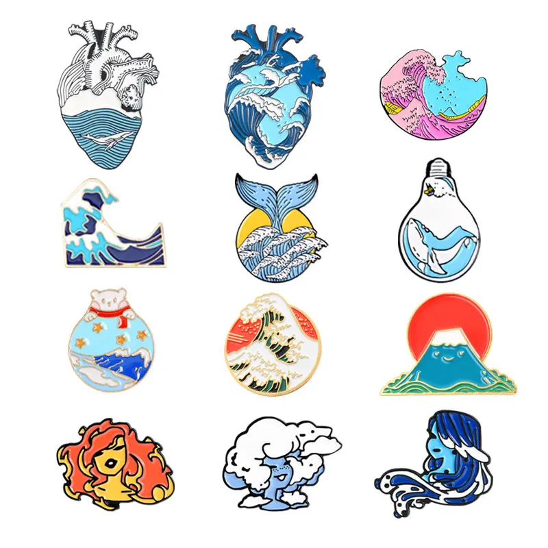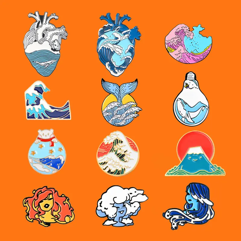 Волнистые булавки, искусственные броши, орган, сердце светильник лампочка, Кит, солнце, лацкан, значки, синяя волна, эмалированная булавка, коллекция ювелирных изделий, подарки