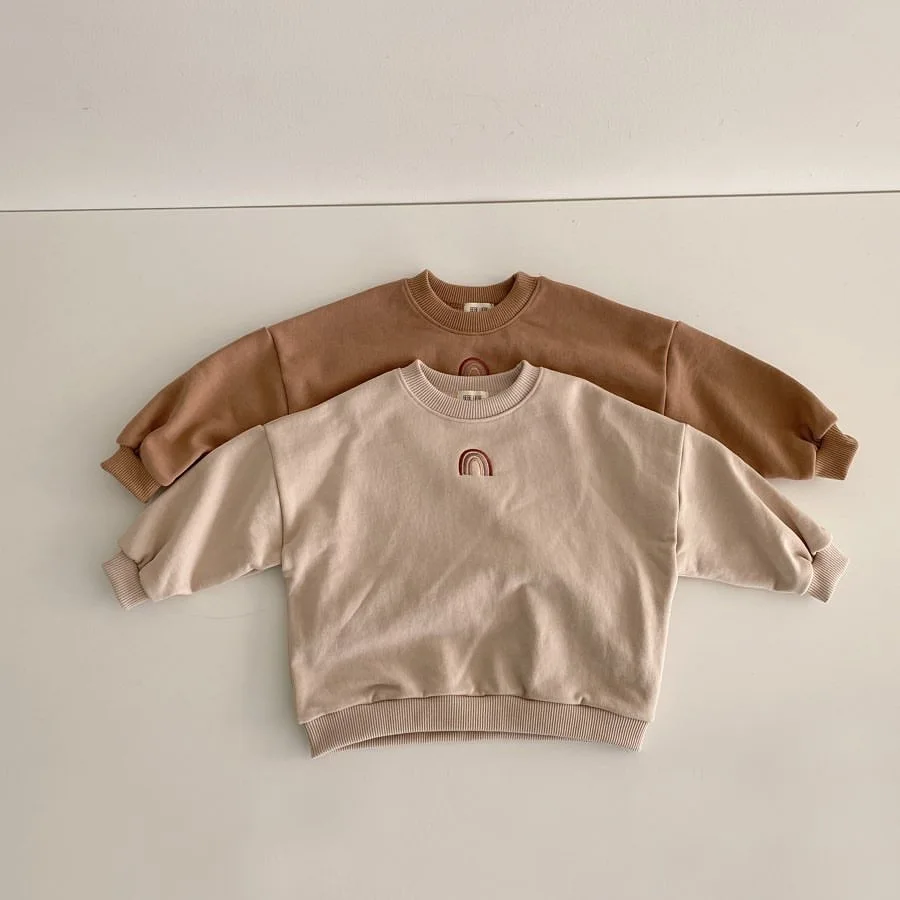 Весенние детские толстовки MILANCEL2022, классические толстовки с круглым вырезом для девочек, толстовки с радужной вышивкой для мальчиков