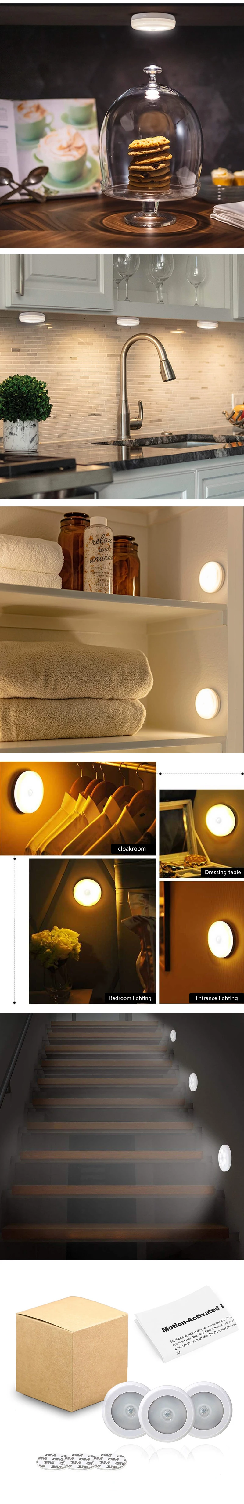 10 шт., светодиодные лампы с инфракрасным датчиком движения, автоматическое включение и выключение, питание от батареи для дома, настенного светильника, кабинета, лестницы