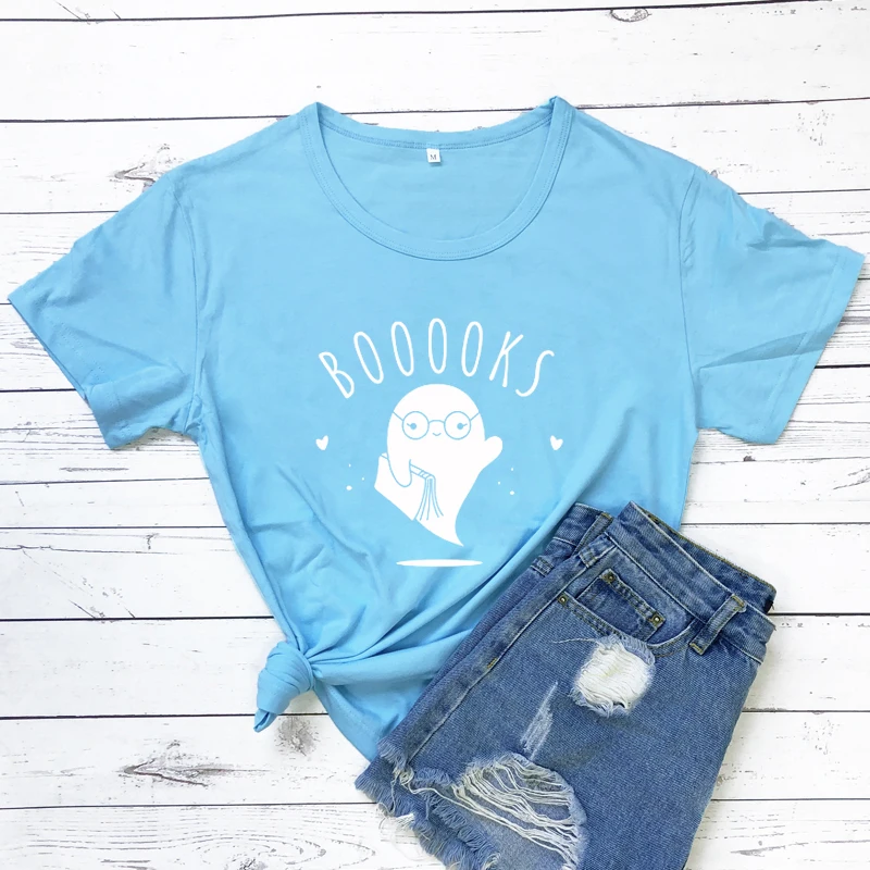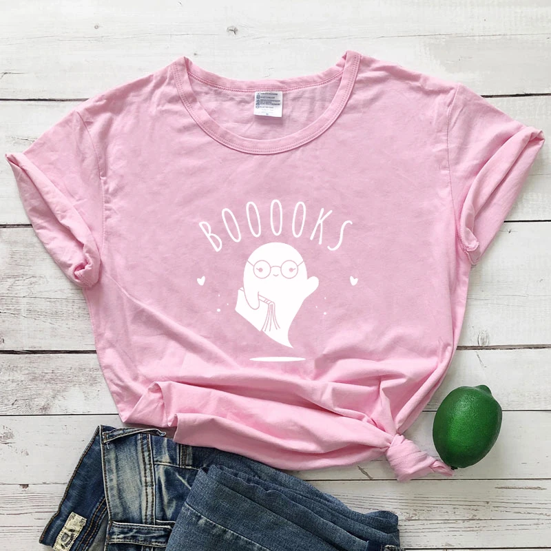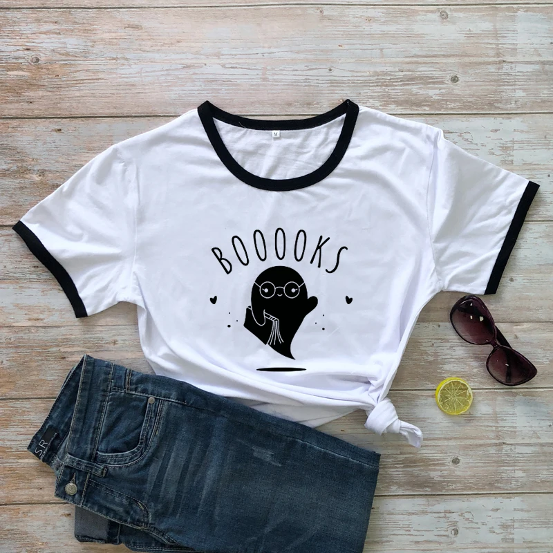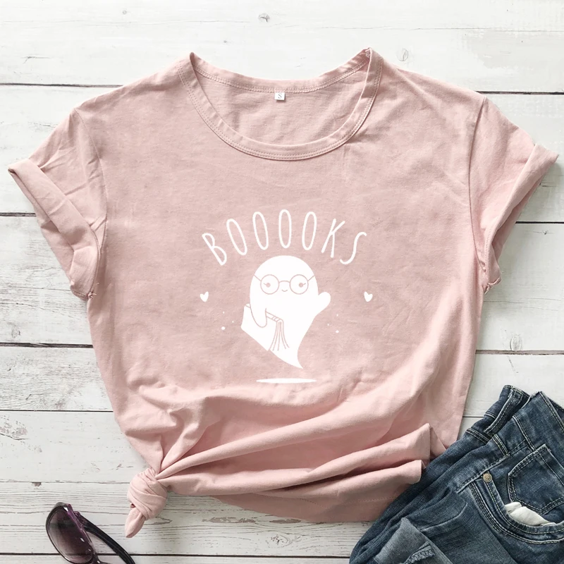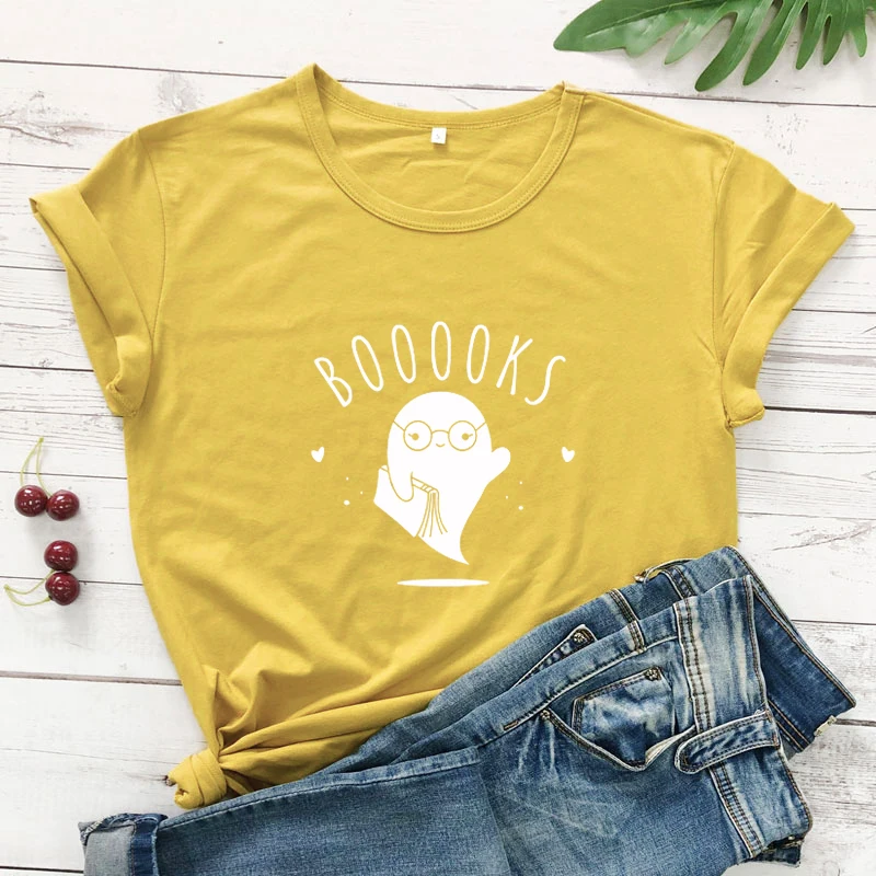 Футболка Booooks из 100% хлопка с изображением призрака, забавный подарок на Хэллоуин, футболка для учителя, Милая женская футболка с изображением графической книги, топ для чтения, футболка