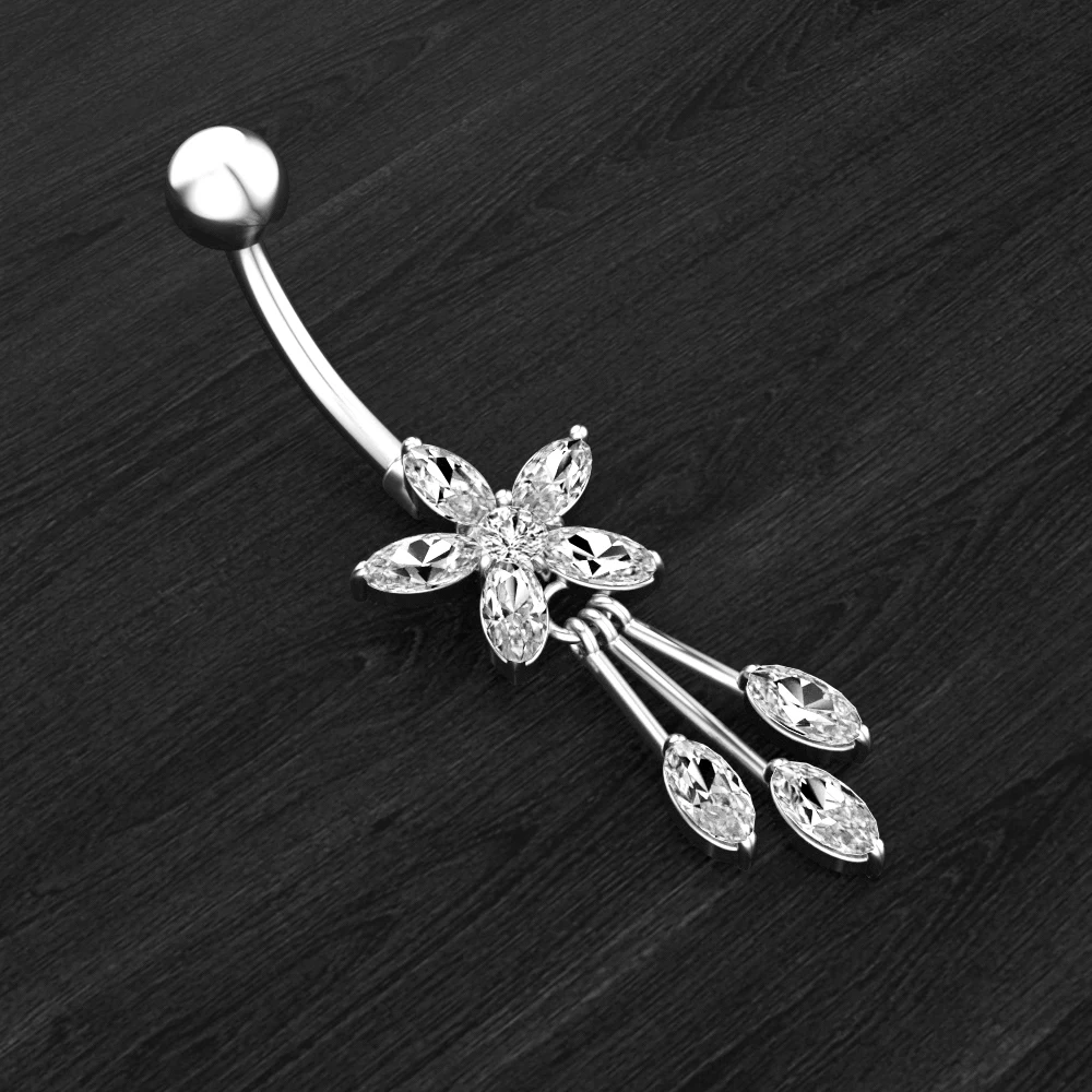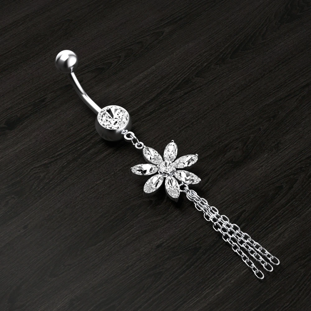 Цветок Сердце длинное висячее пирсинг пупка кольцо 14 г Нержавеющая...
