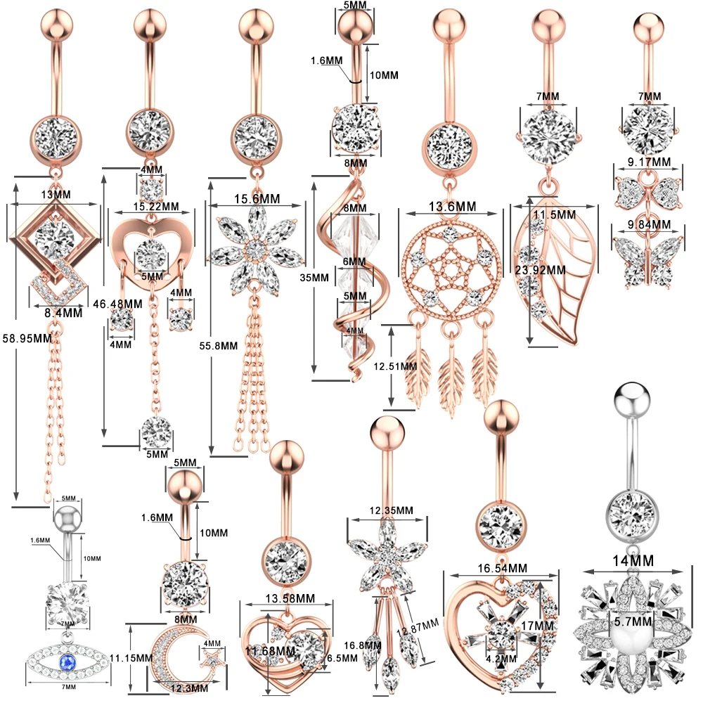 Кольцо для пупка с кристаллами, 1 шт., 14G, сердце, живот, висячий ...