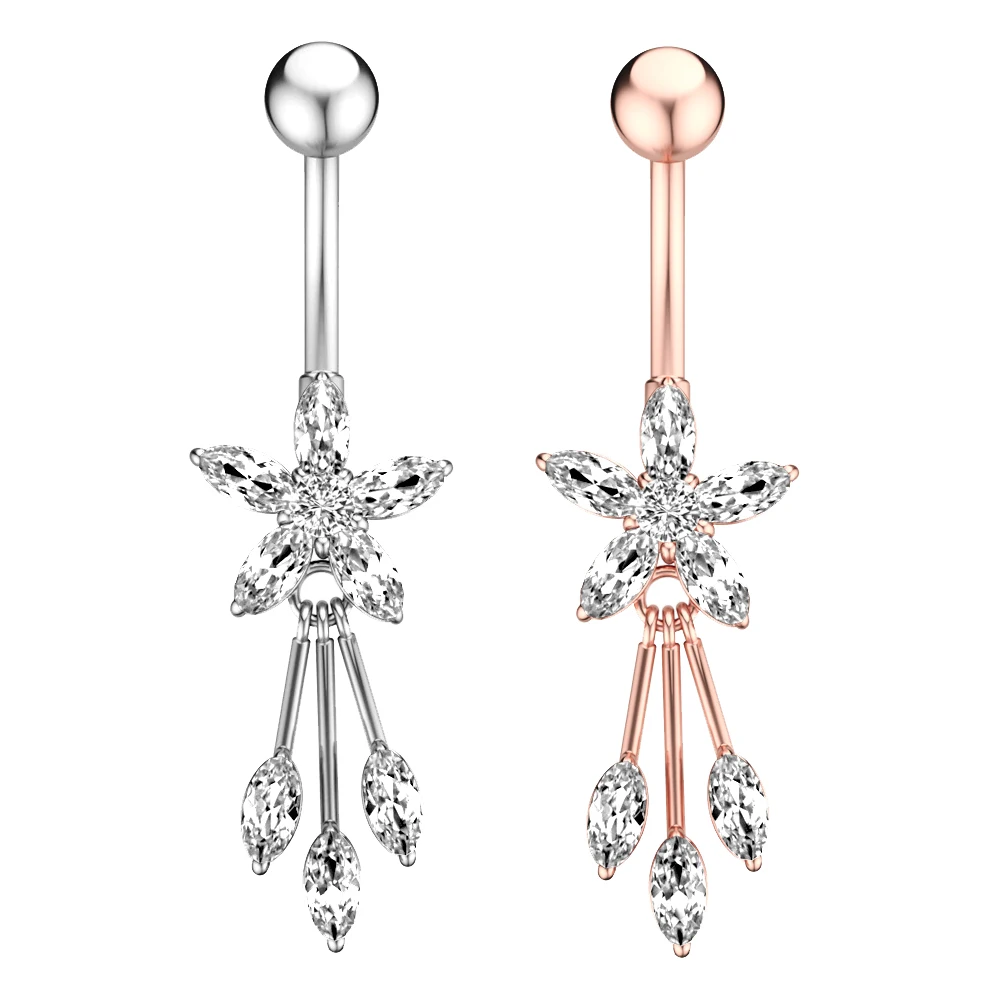 Цветок Сердце длинное висячее пирсинг пупка кольцо 14 г Нержавеющая Сталь CZ Кристалл Ombligo Oreja женское украшение для тела Вечерние