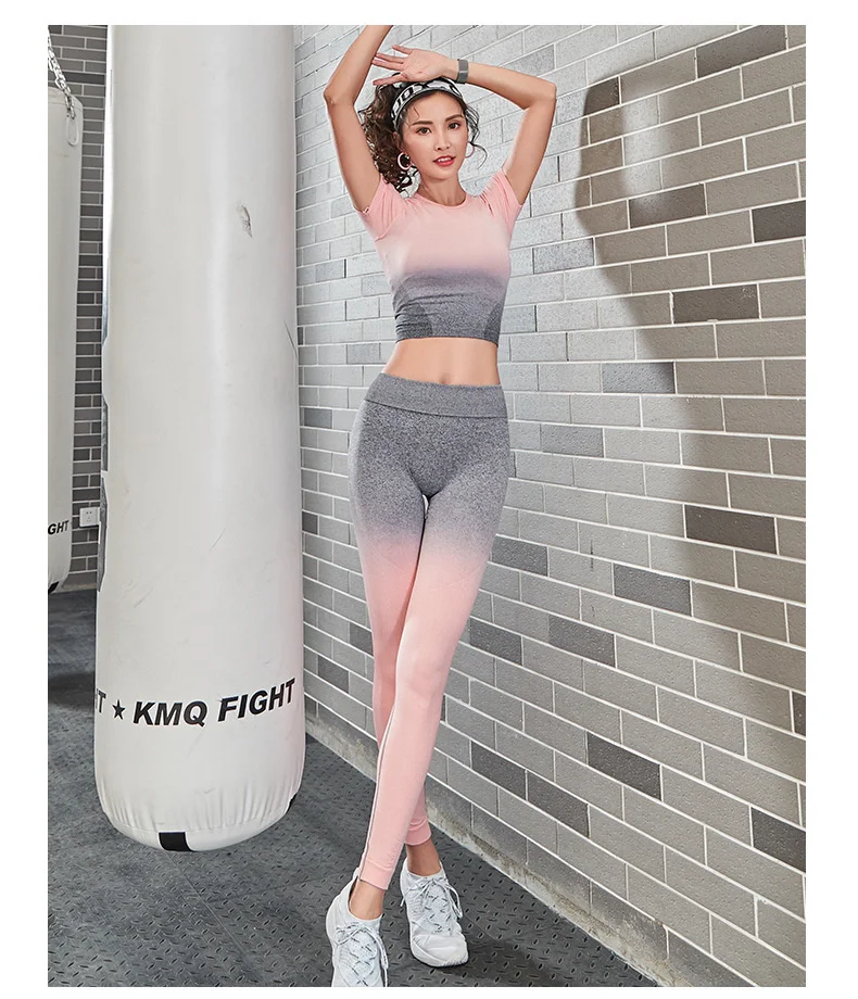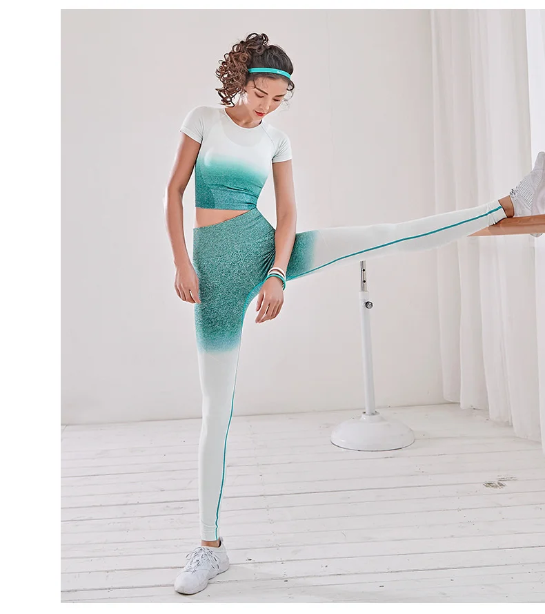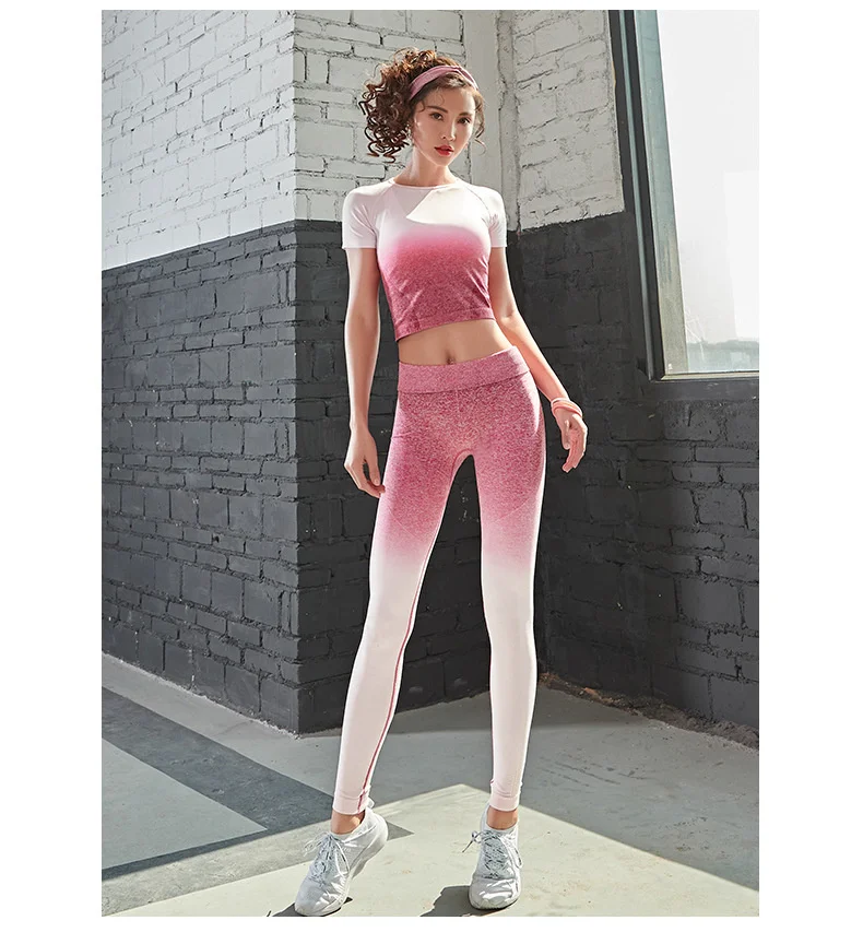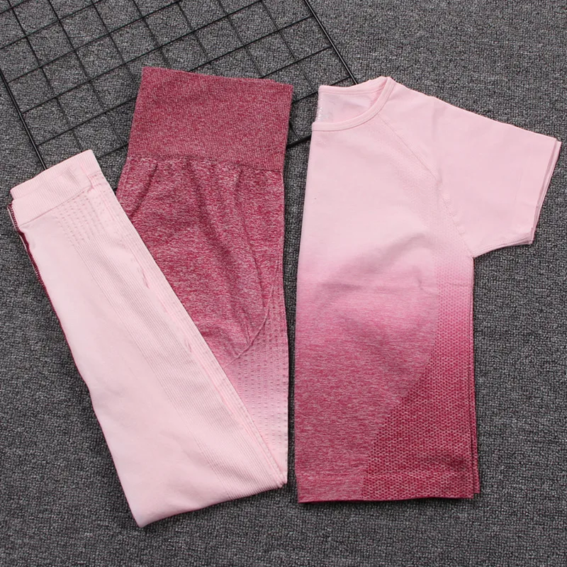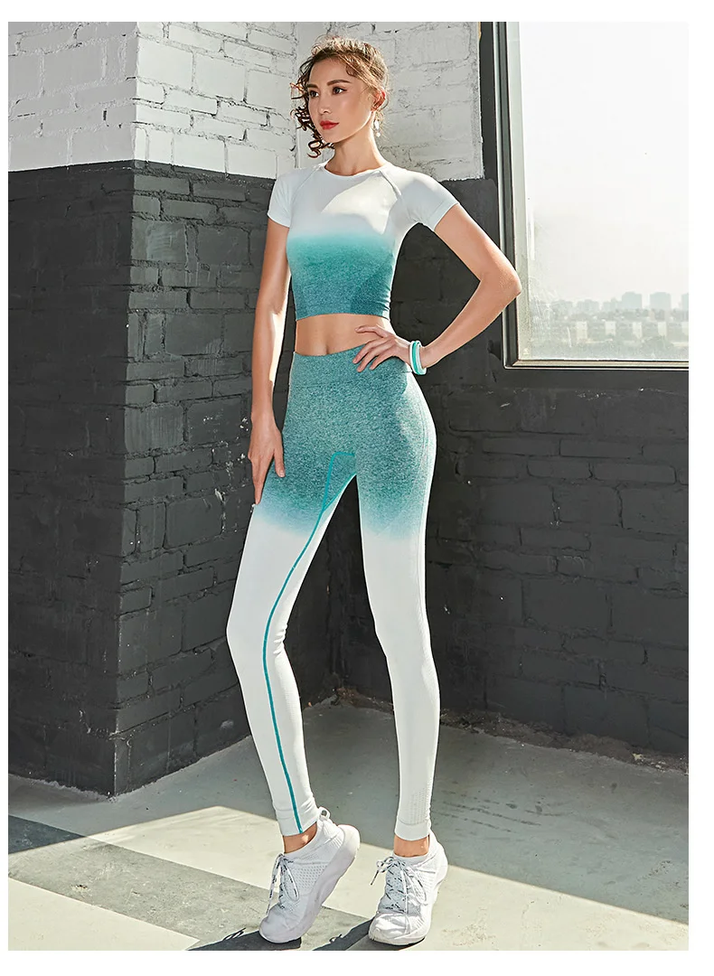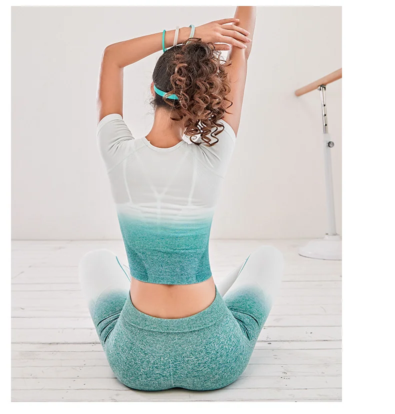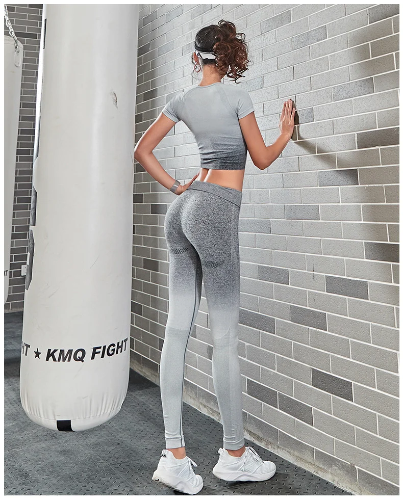 Женский спортивный костюм для йоги из 2 предметов, бесшовные леггинсы с эффектом омбре