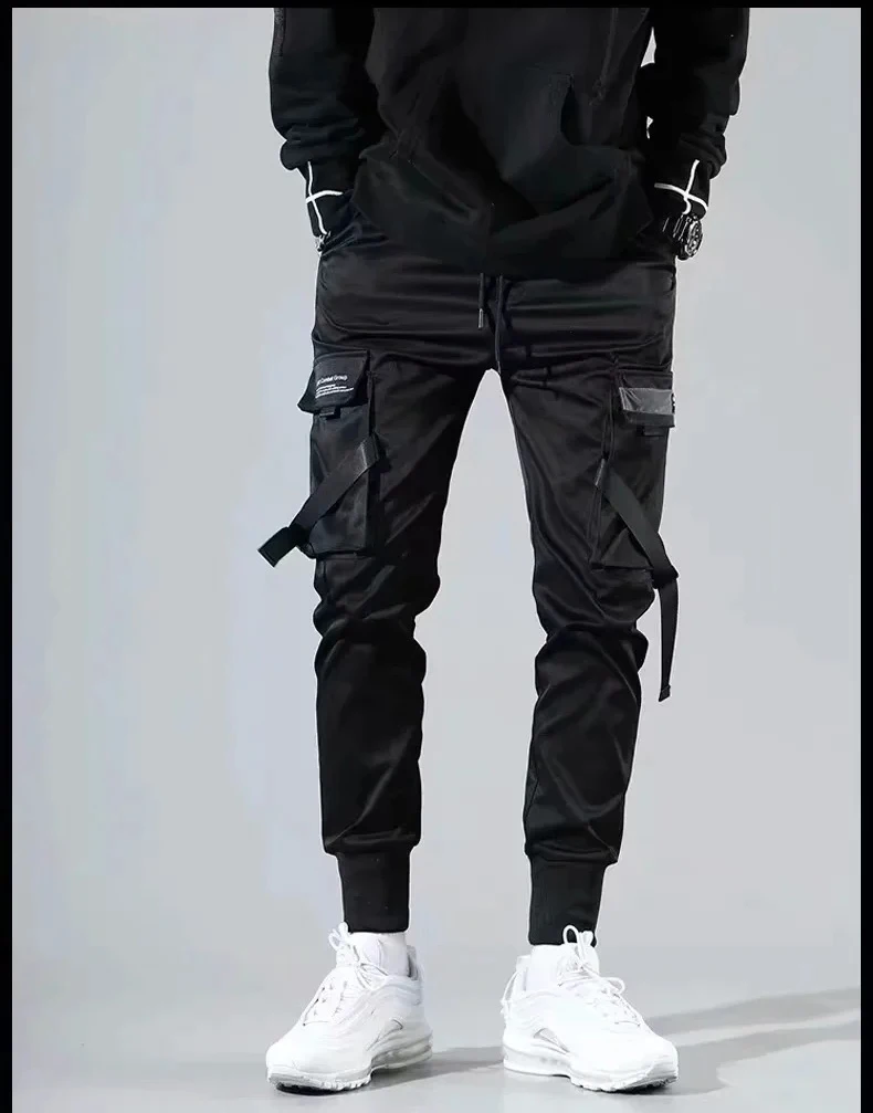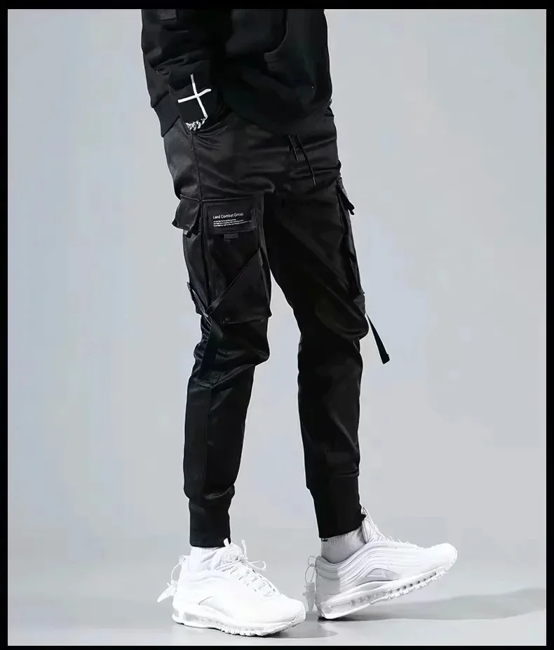Джоггеры-шаровары с лентами, мужские брюки-карго, уличная одежда 2022, повседневные спортивные брюки в стиле хип-хоп с карманами, мужские Модные брюки в стиле Харадзюку