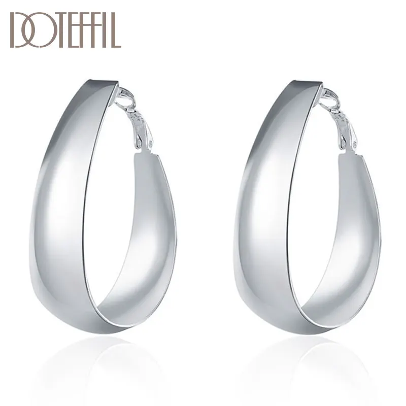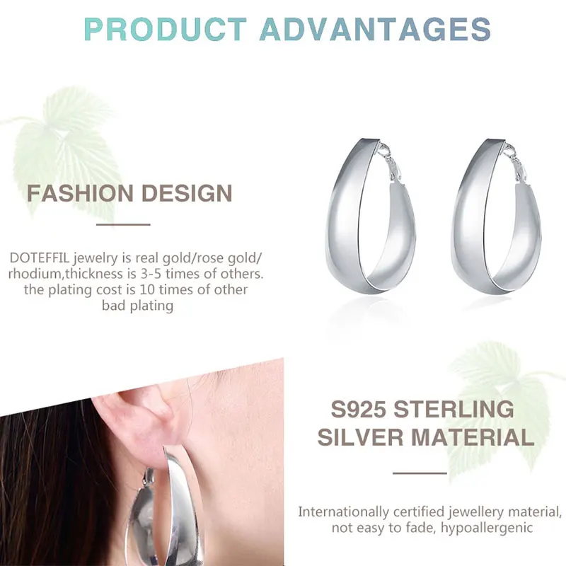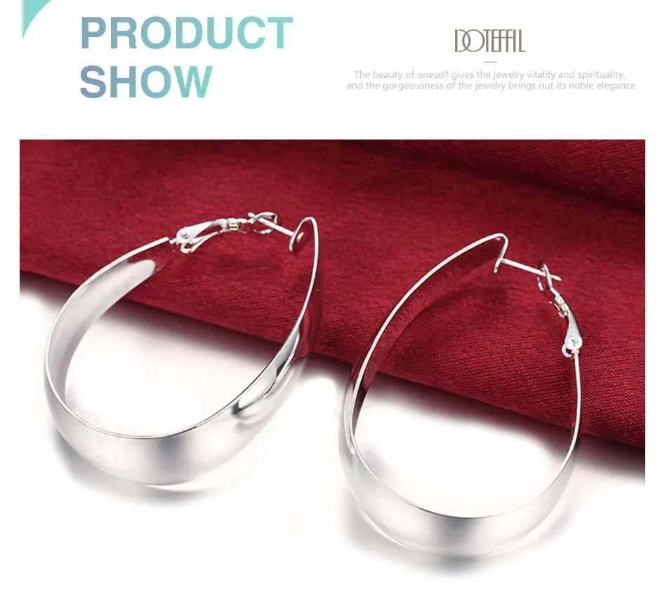 Круглые Гладкие серьги-лапши DOTEFFIL из стерлингового серебра 925 пробы в форме яйца, Женский вечерние, модное очаровательное свадебное обручальное ювелирное изделие
